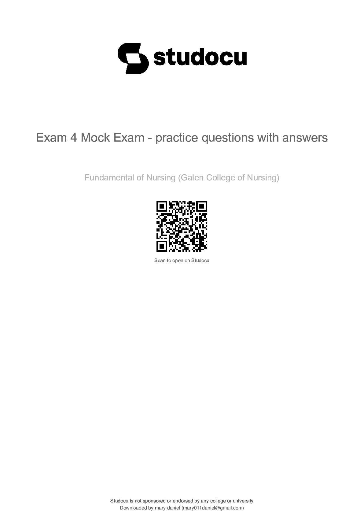 NURSING. > EXAM > EXAM 4 MOCK EXAM NUR155 - PRACTICE QUESTIONS WITH ANSWERS 2024/2025 FUNDAMENTAL OF NURSING EXAM 4 MOCK EXAM (All)