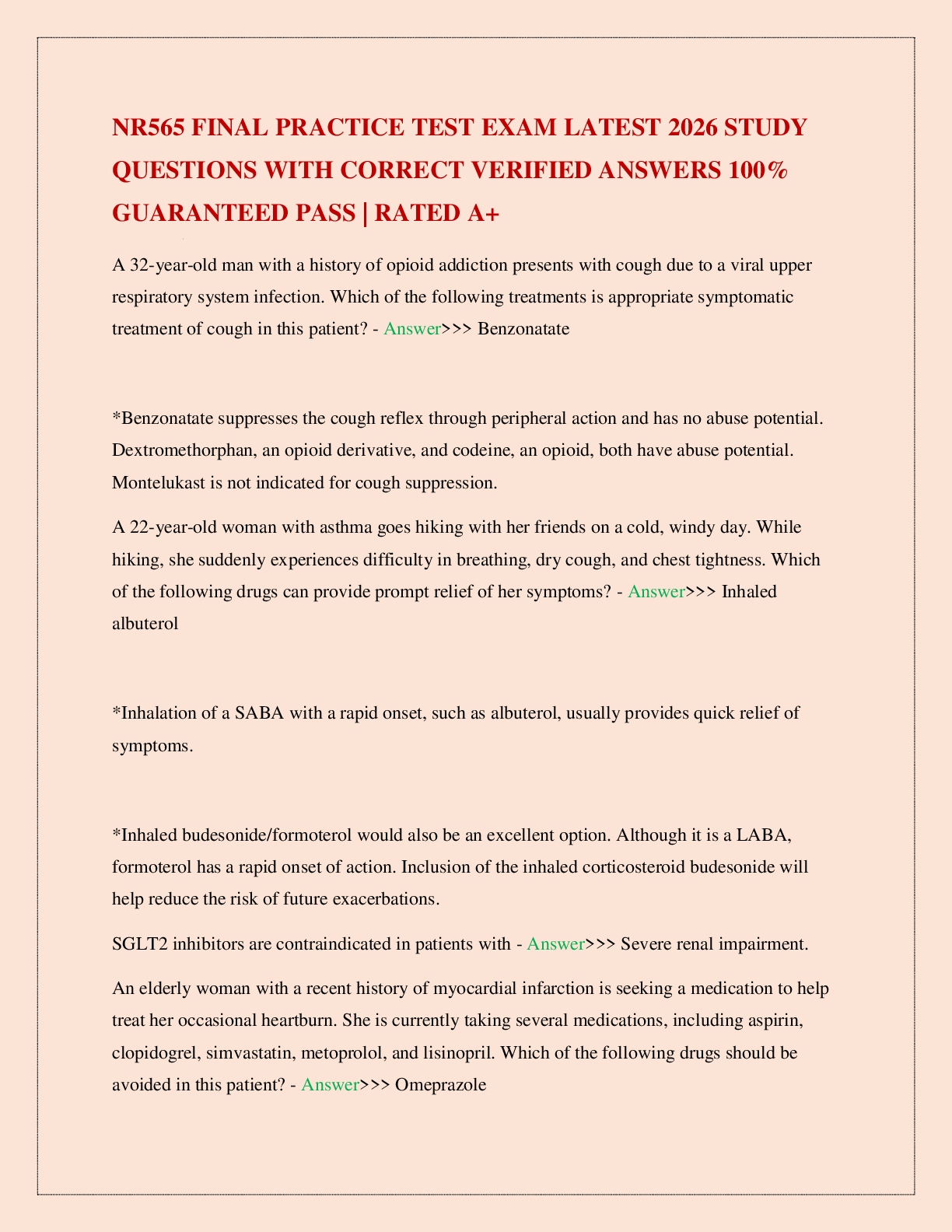 NURSING. > EXAM > NR565 FINAL PRACTICE TEST EXAM LATEST 2026 STUDY QUESTIONS WITH CORRECT VERIFIED ANSWERS 100% GUARANTEED PASS | RATED A+ (All)