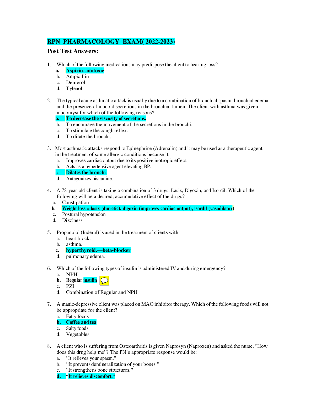 NURSING. > EXAM > NCSBN – Lesson 6A: Pharmacological & Parenteral Therapies Study Guide,100% CORRECT (All)