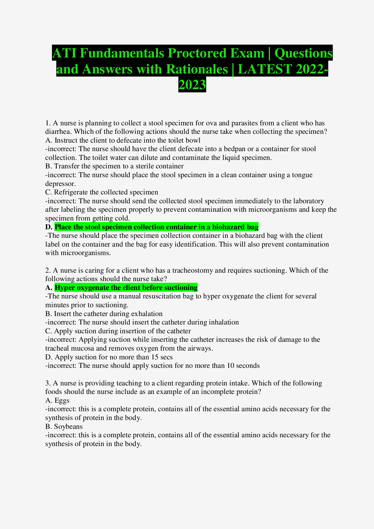 NURSING. > EXAM > ATI Fundamentals Proctored Exam | Questions and Answers with Rationales | LATEST 2022-2023 (All)