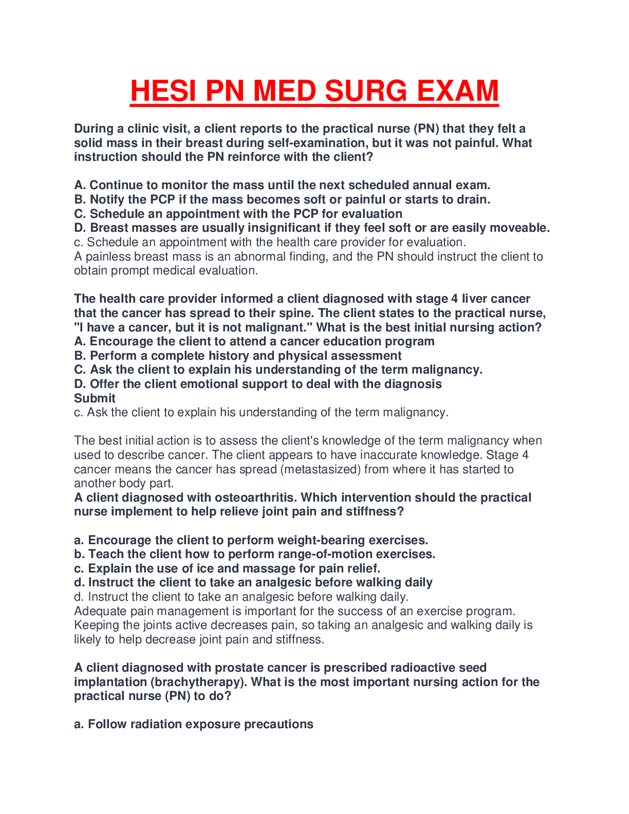 *NURSING > HESI > HESI PN MED SURG ACTUAL EXAM QUESTIONS AND ANSWERS BEST FOR YOUR EXAM PREPARATION AND STUDY. (All)