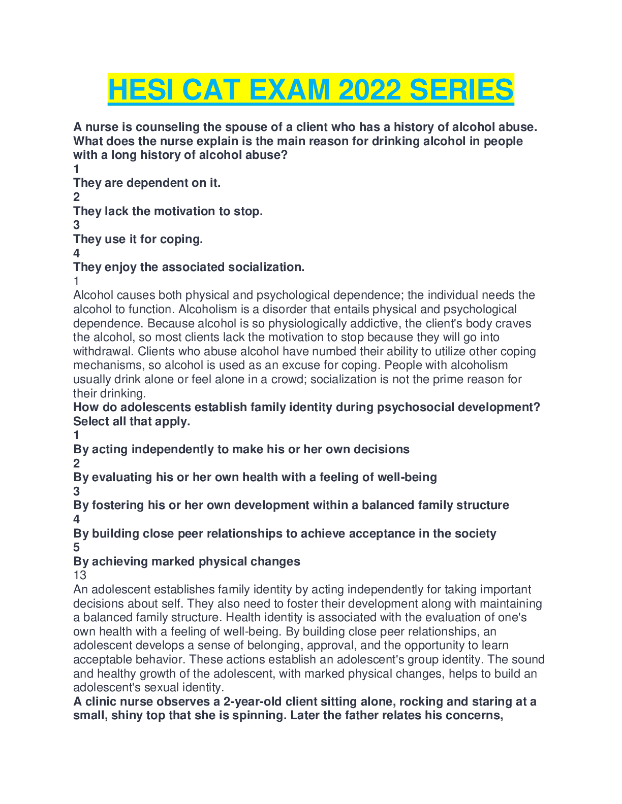 *NURSING > HESI > HESI RN CAT EXAM QUESTIONS WITH RATIONALES AND ANSWERS.DOWNLOAD FOR A PASS (All)