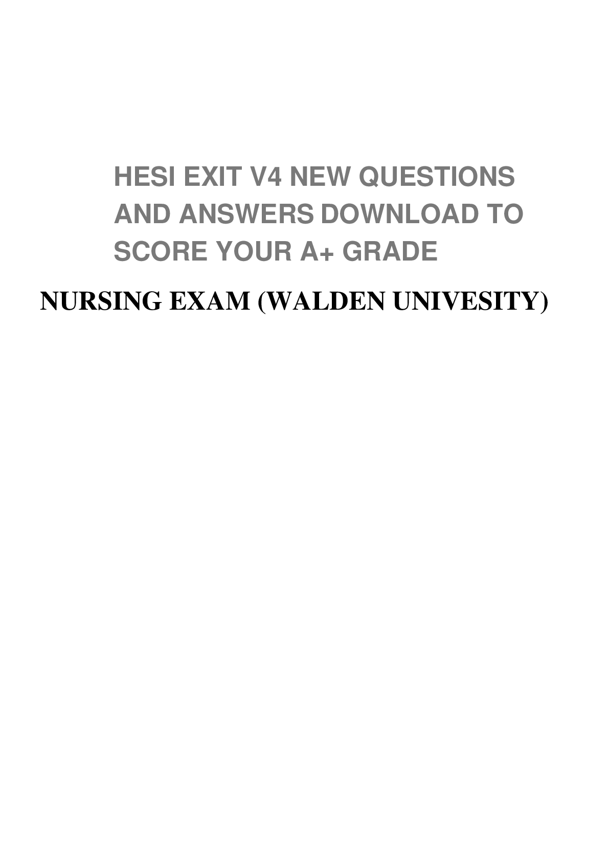 *NURSING > HESI > HESI EXIT V4 NEW EXAM QUESTIONS AND ANSWERS,WALDEN UNIVESIT (All)