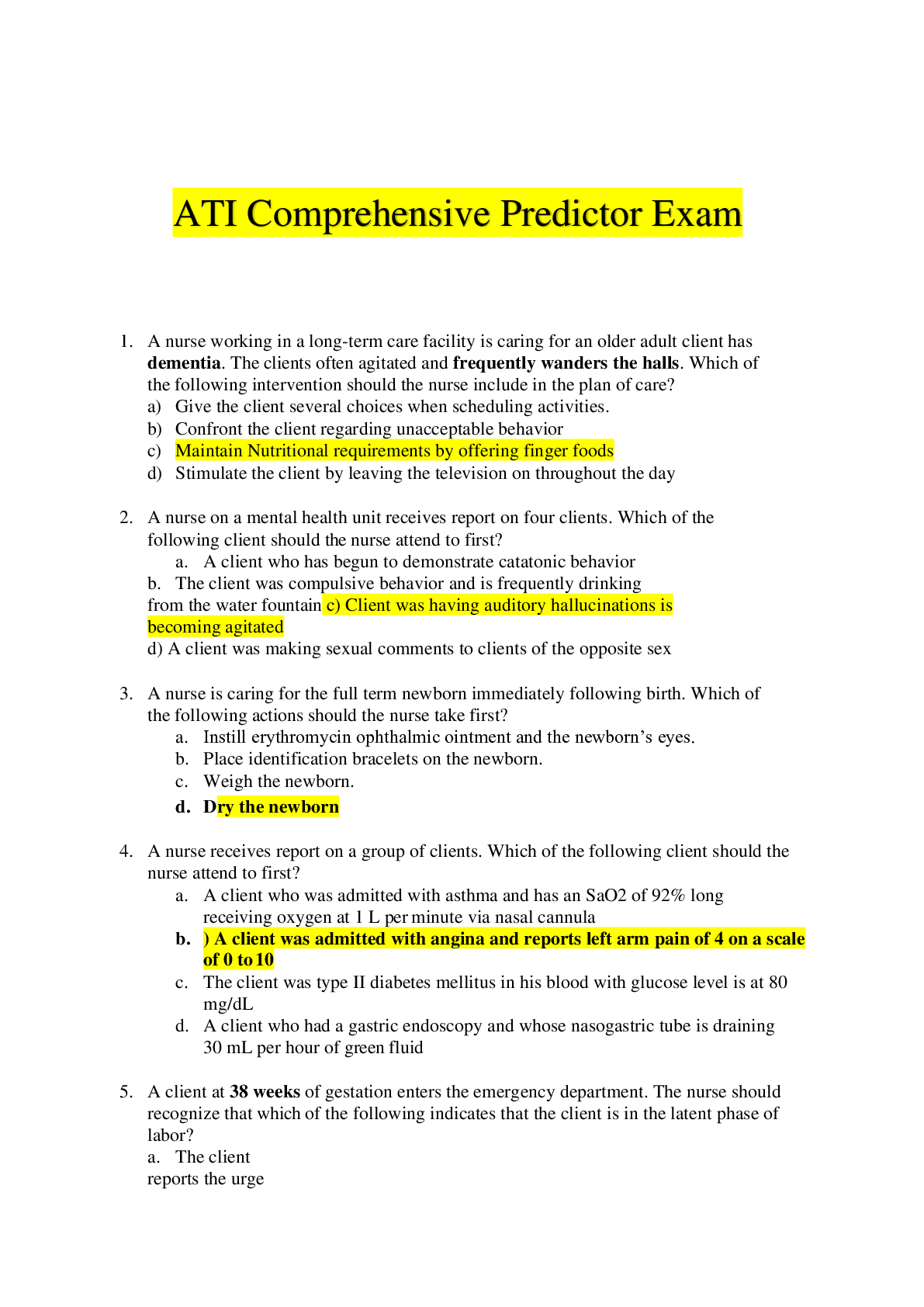 *NURSING > QUESTIONS and ANSWERS > ATI Comprehensive Predictor Exam | QUESTIONS AND ANSWERS 2020/2021 (All)