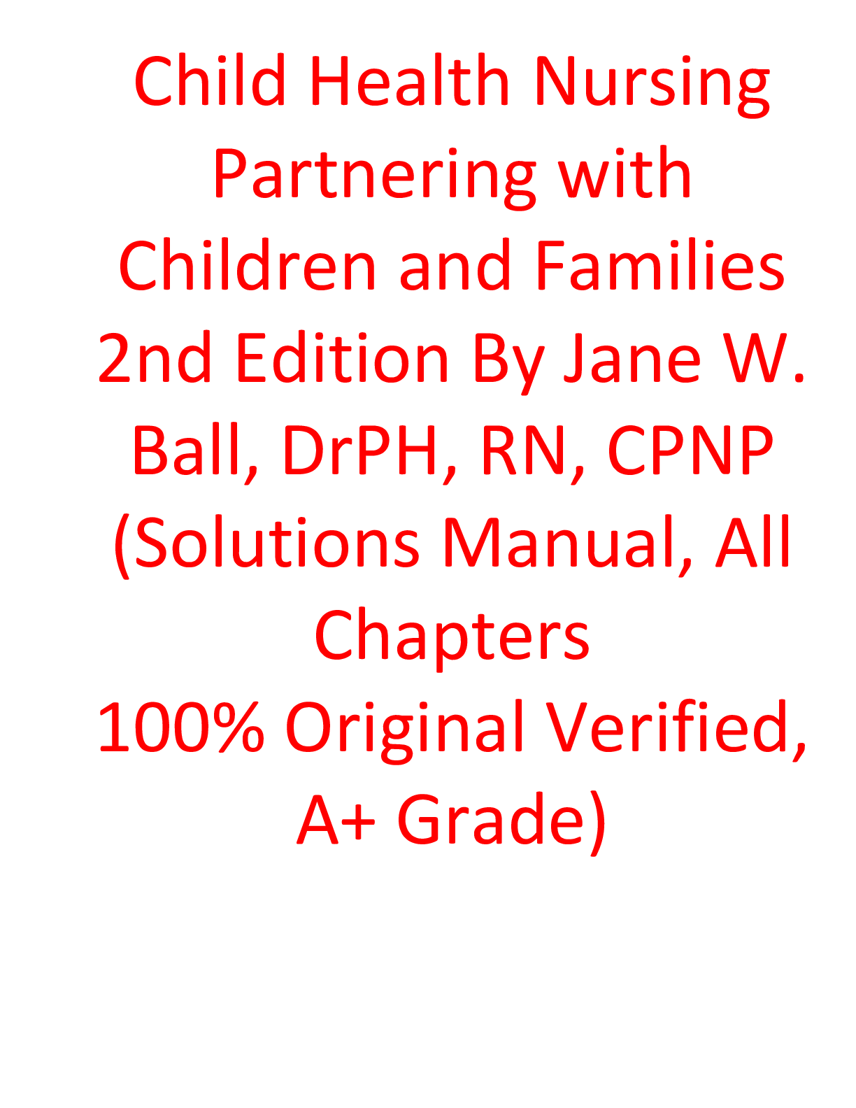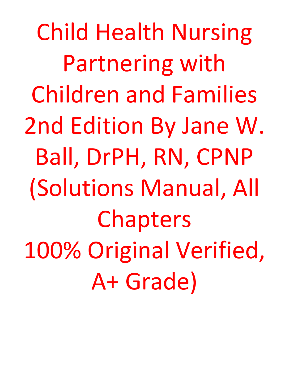 *NURSING > SOLUTIONS MANUAL > Solutions Manual For Child Health Nursing Partnering with Children and Families 2nd Edition By Jane W. Ball, DrPH, RN, CPNP (All)