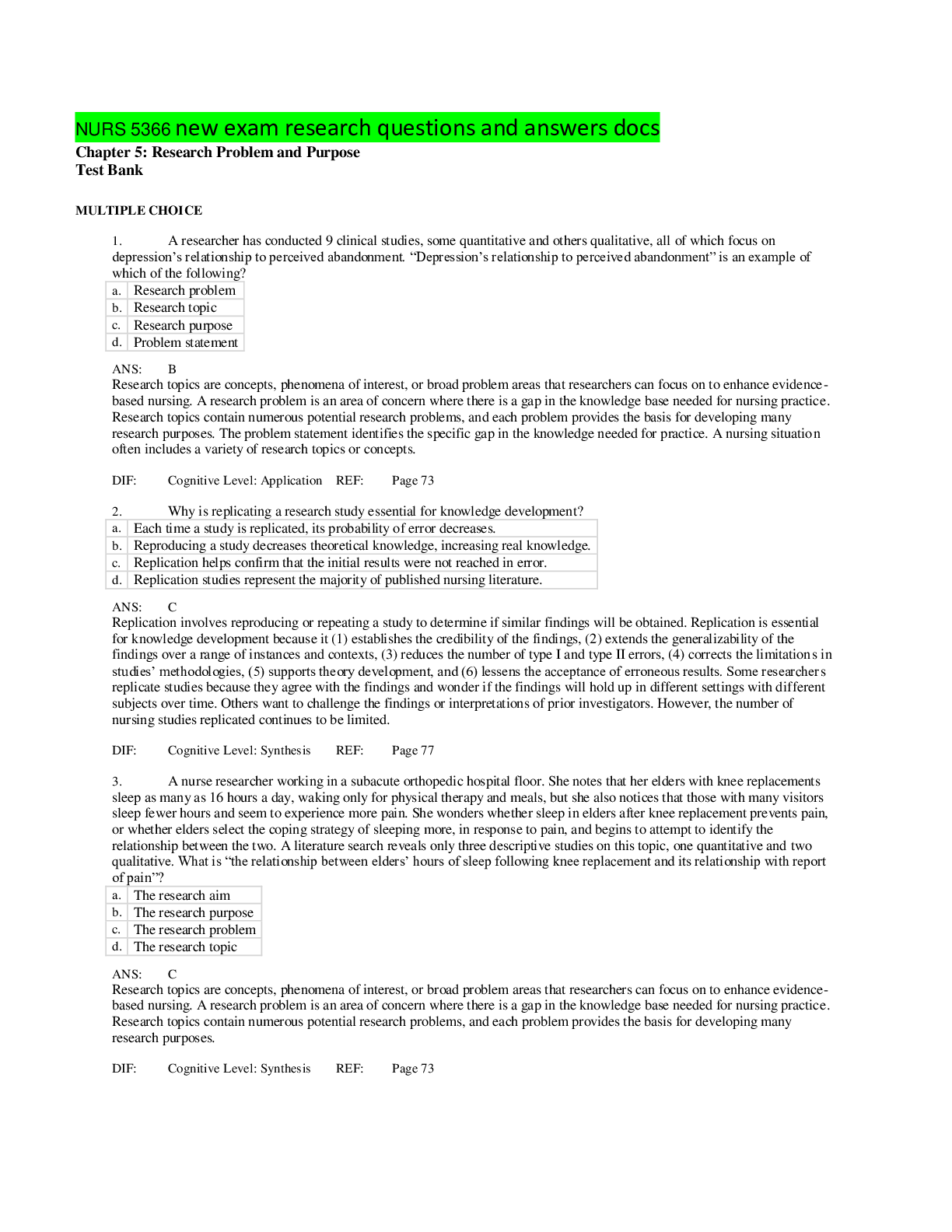 *NURSING > QUESTIONS & ANSWERS > NURS 5366 exam questions and answers solution 2020 (All)
