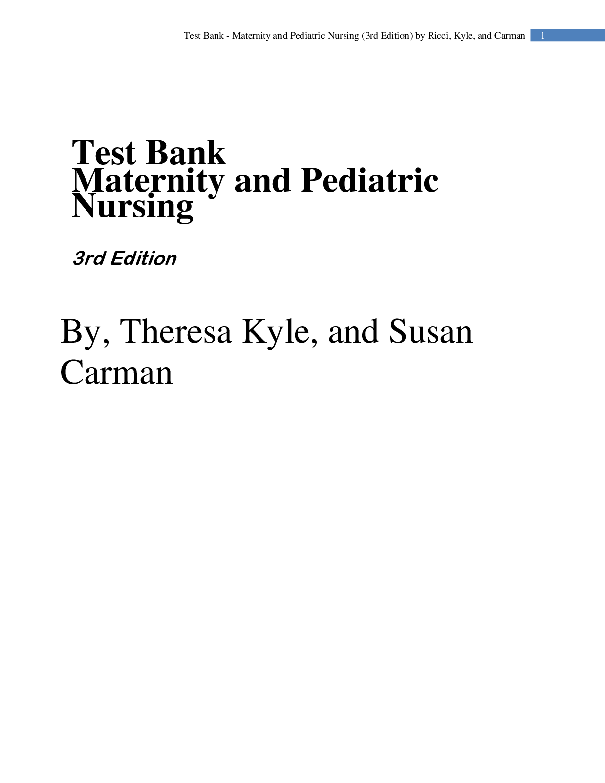 *NURSING > TEST BANKS > Test Bank Maternity and Pediatric Nursing 3rd Edition By, Theresa Kyle, and Susan Carman (All)