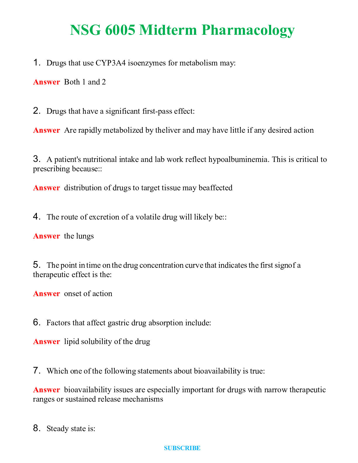 *NURSING > EXAM > NSG 6005 Midterm Pharmacology Questions and Verified Answers (All)