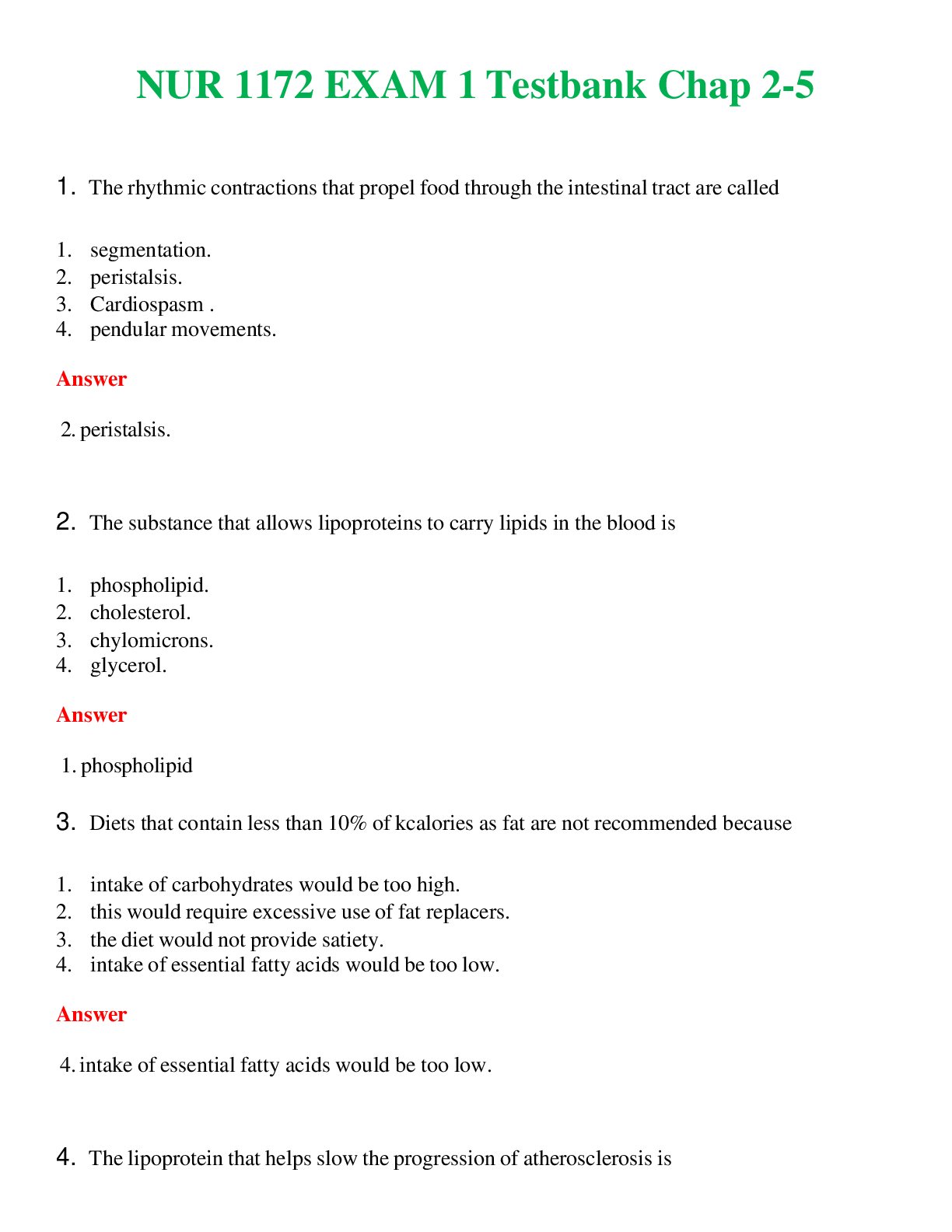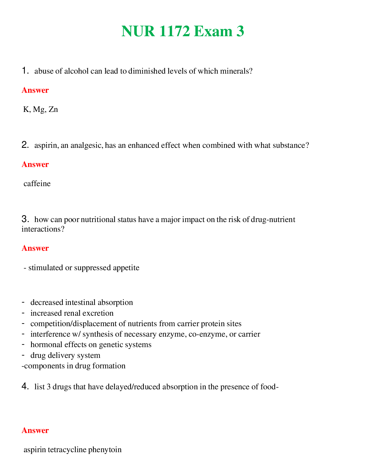 *NURSING > EXAM > NUR 1172 NUTRITION EXAM I | GRADED A+ SOLVED 100% CORRECT (All)