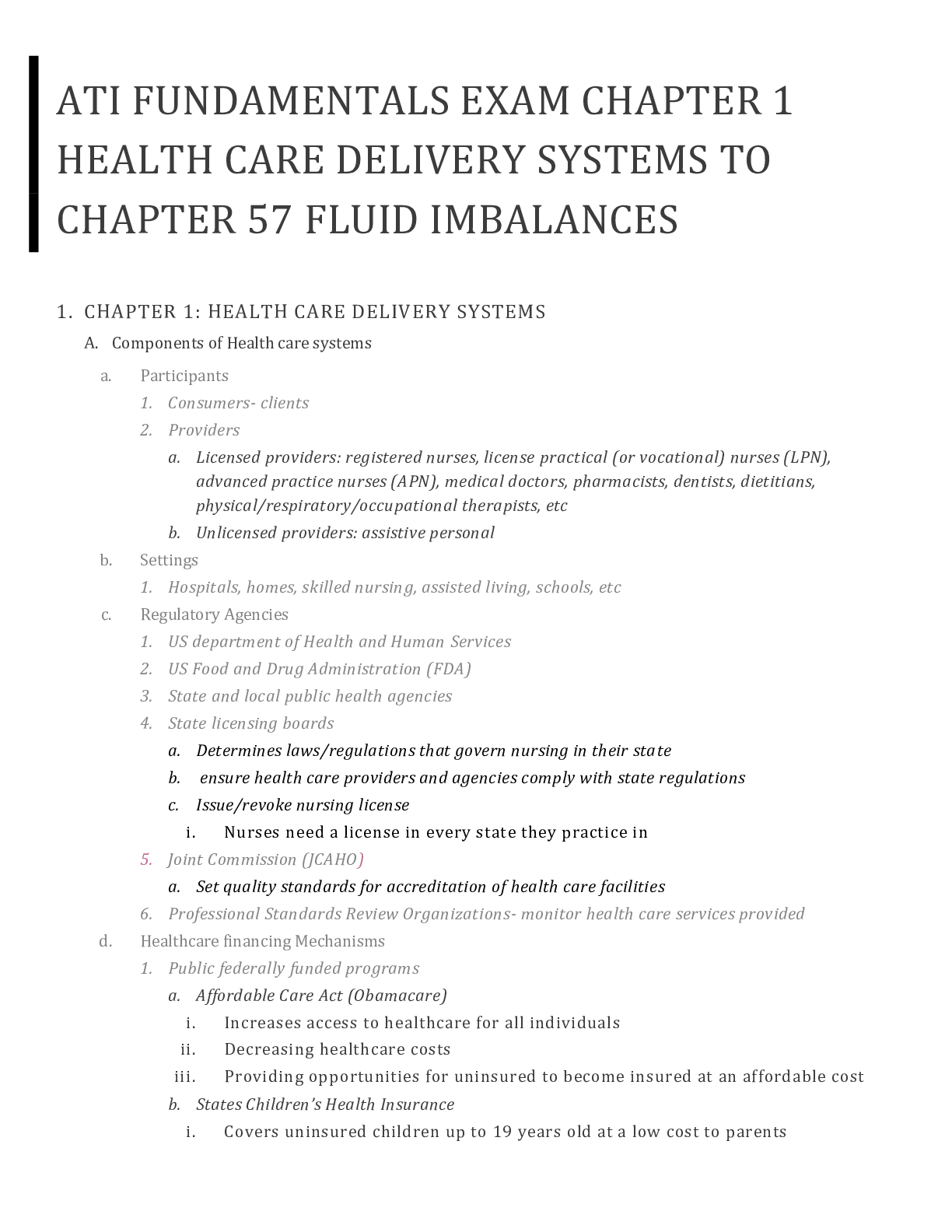 *NURSING > QUESTIONS and ANSWERS > ATI FUNDAMENTALS EXAM CHAPTER 1 HEALTH CARE DELIVERY SYSTEMS TO CHAPTER 57 FLUID IMBALANCES (All)