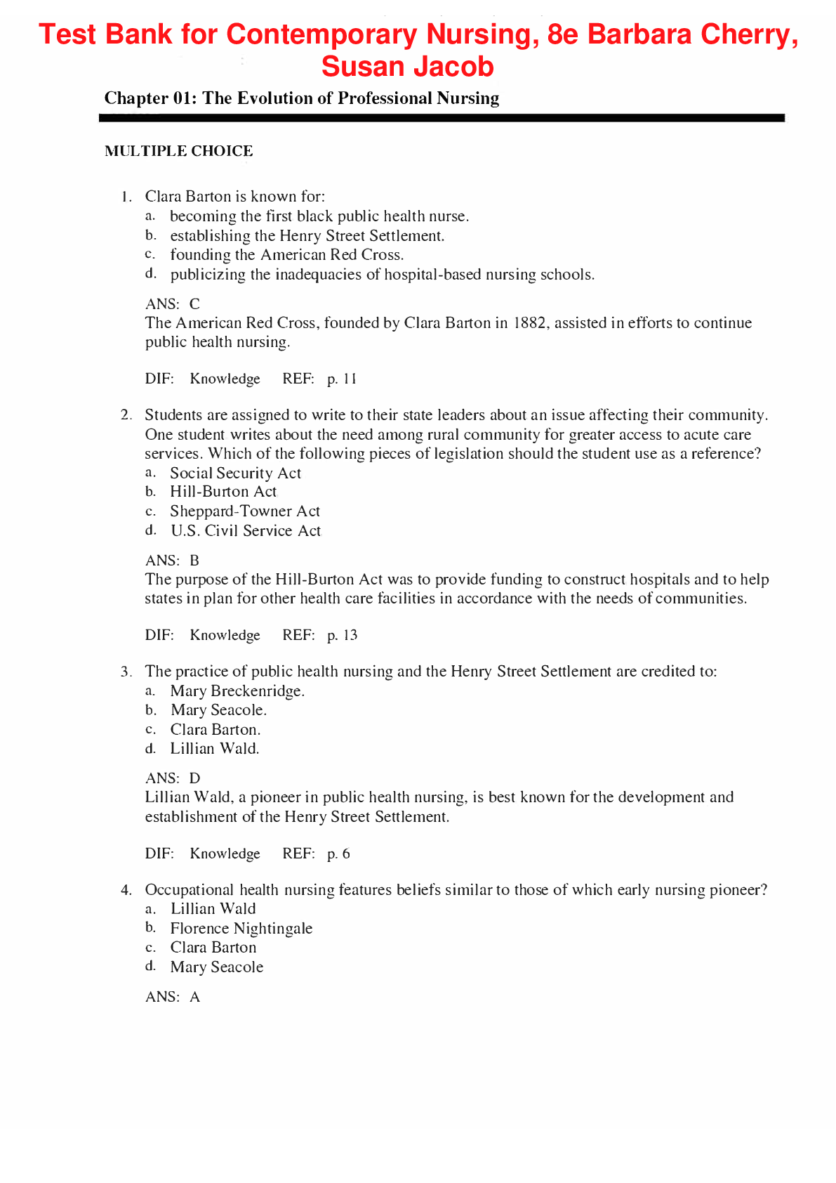 *NURSING > TEST BANKS > Test Bank for Contemporary Nursing, 8e Barbara Cherry, Susan Jacob (All)