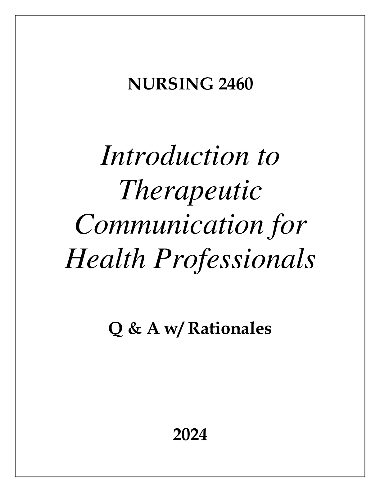 *NURSING > EXAM > NURSING 2460 INTRODUCTION TO THERAPEUTIC COMMUNICATION FOR HEALTH PROFESSIONALS EXAM Q & A 2024 (All)