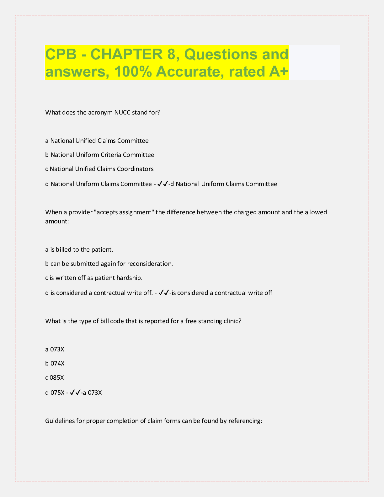 *NURSING > QUESTIONS & ANSWERS > CPB - CHAPTER 8, Questions and answers, 100% Accurate, rated A+ (All)