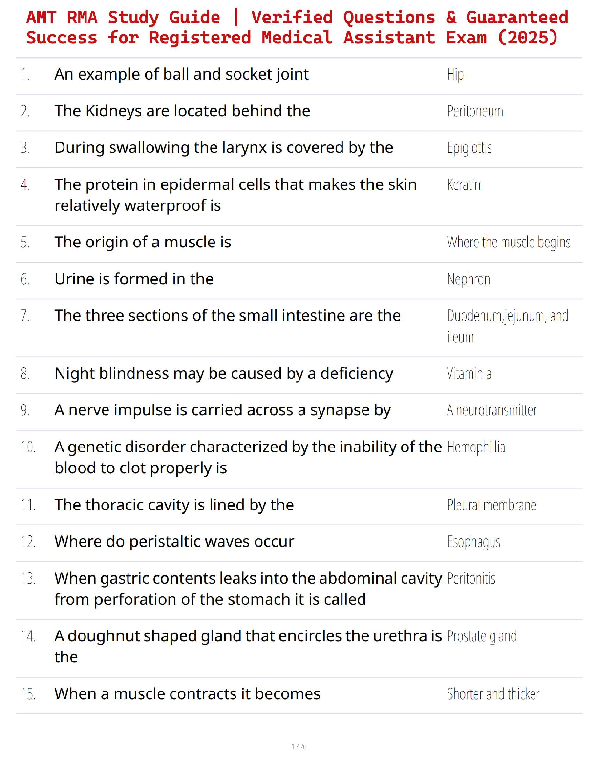 *NURSING > STUDY GUIDE > AMT RMA Study Guide | Verified Questions & Guaranteed Success for Registered Medical Assistant Exam (2025) (All)