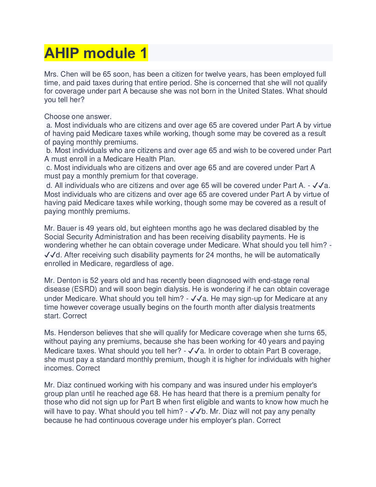 *NURSING > QUESTIONS & ANSWERS > AHIP module 1 with complete solutions (All)