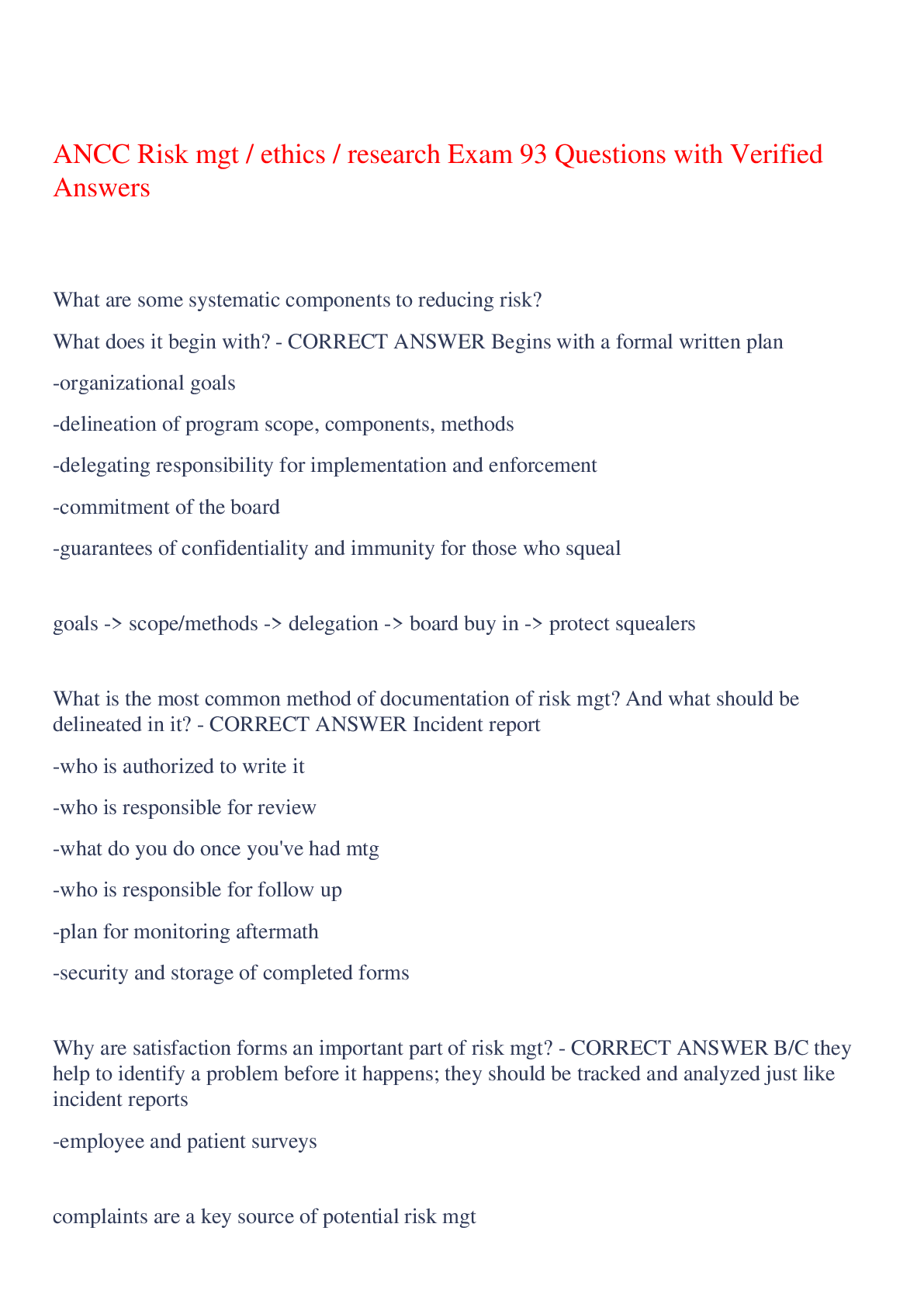 *NURSING > EXAM > ANCC Risk mgt / ethics / research Exam 93 Questions with Verified Answers,100% CORRECT (All)