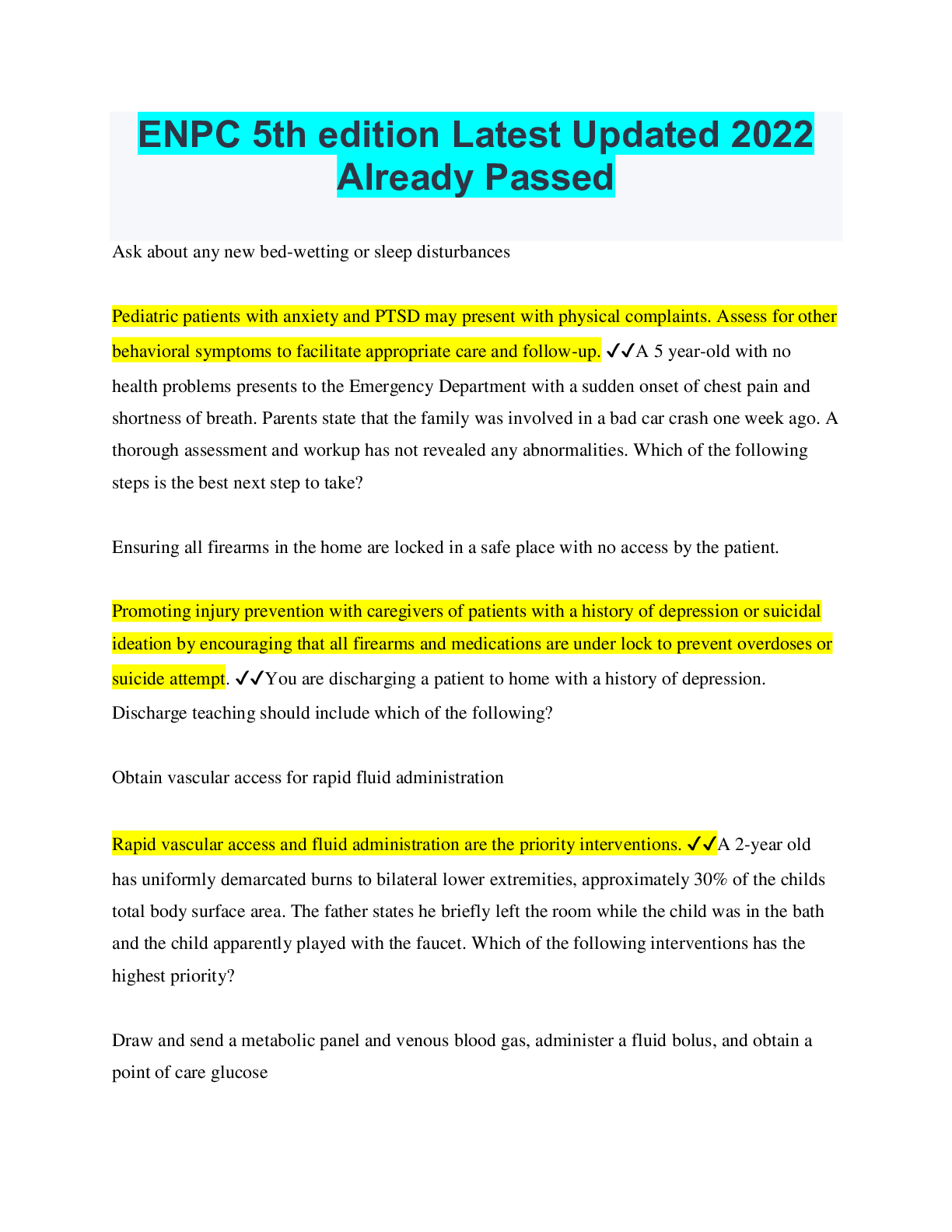 *NURSING > QUESTIONS & ANSWERS > ENPC 5th edition Latest Updated 2022 Already Passed (All)