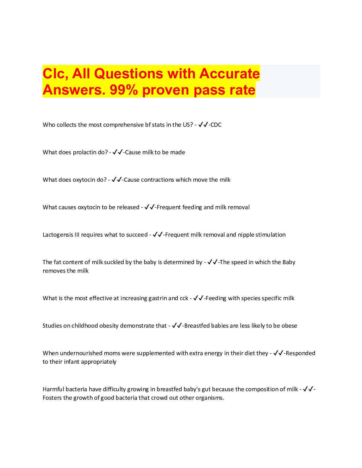 *NURSING > QUESTIONS & ANSWERS > Clc, All Questions with Accurate Answers. 99% proven pass rate (All)