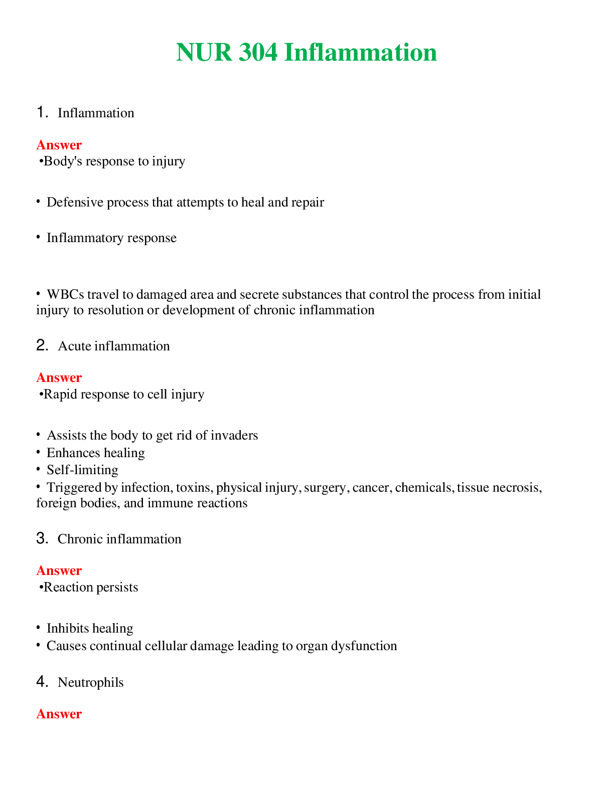 *NURSING > EXAM > NUR 304 INFLAMMATION | A SOLVED 100% CORRECT (All)