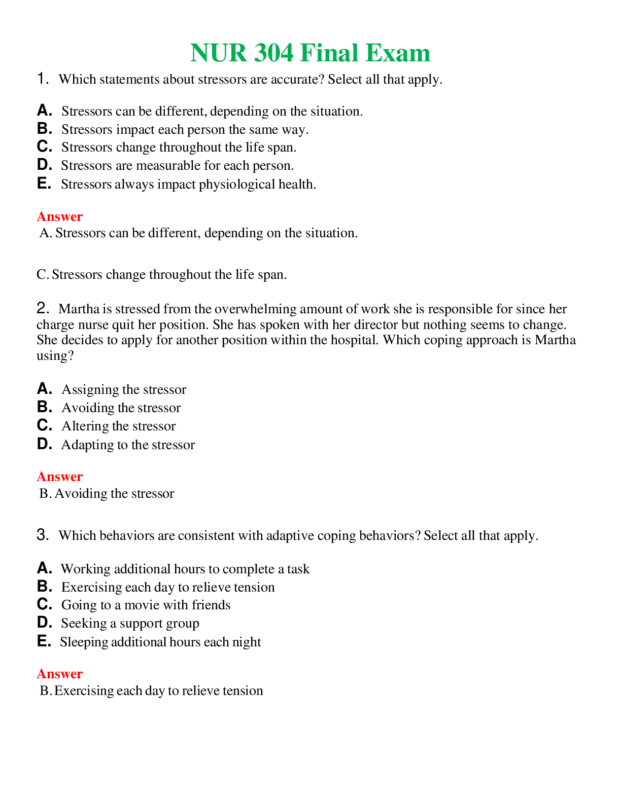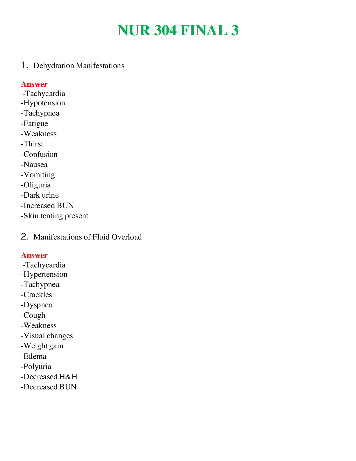 *NURSING > EXAM > NUR 304 FINAL 3 | LATEST QUESTIONS WITH COMPLETE GRADE A++ ANSWERS (All)