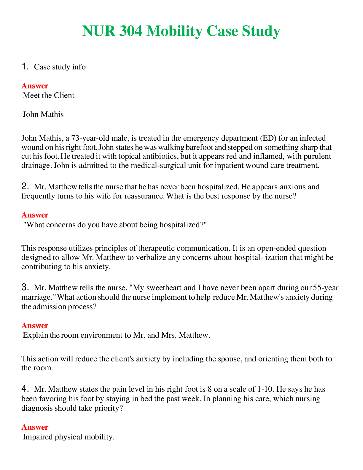 *NURSING > EXAM > NUR 304 MOBILITY CASE STUDY | GRADED A+ QUESTIONS AND ANSWERS (SOLVED) (All)