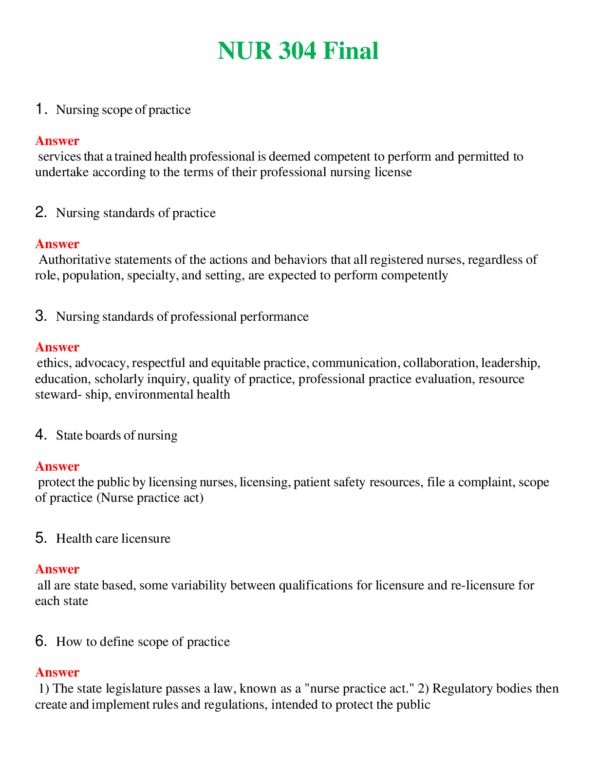 *NURSING > EXAM > NUR 304 FINAL | A+ RATED GUIDE | QUESTIONS AND ANSWERS (SOLVED) (All)