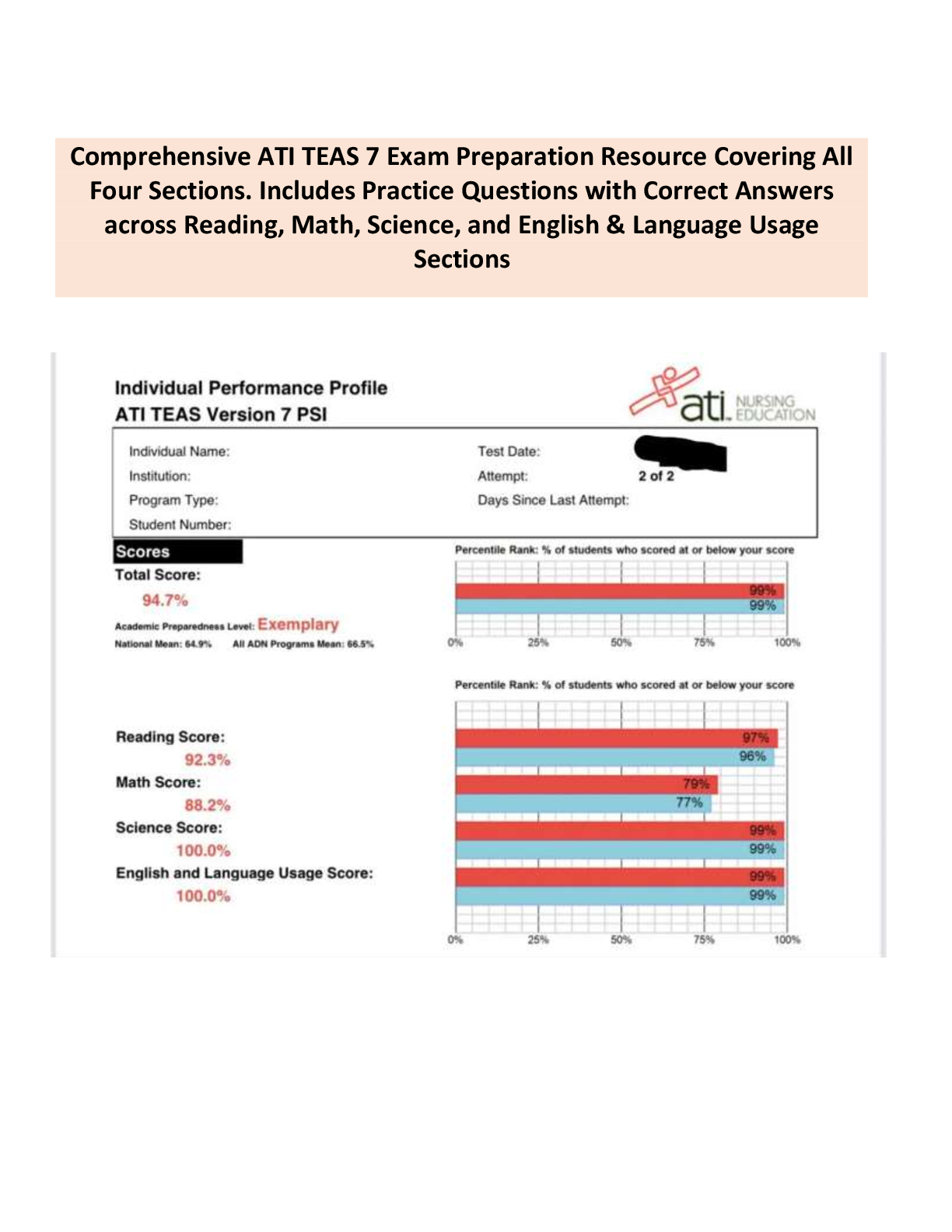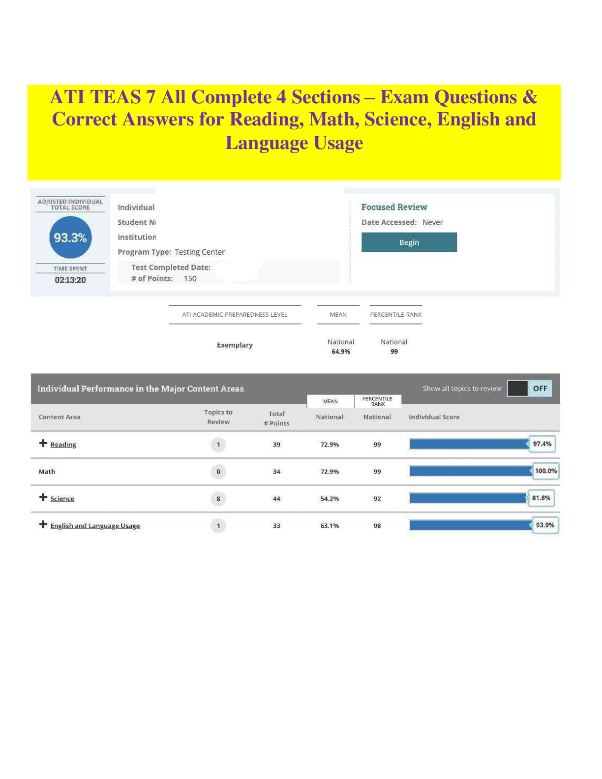 ATI TEAS 7 > EXAM > Comprehensive ATI TEAS 7 Exam Preparation Resource Covering All Four Sections. Includes 2026 Practice Questions with Correct Answers across Reading, Math, Science, and English & Language