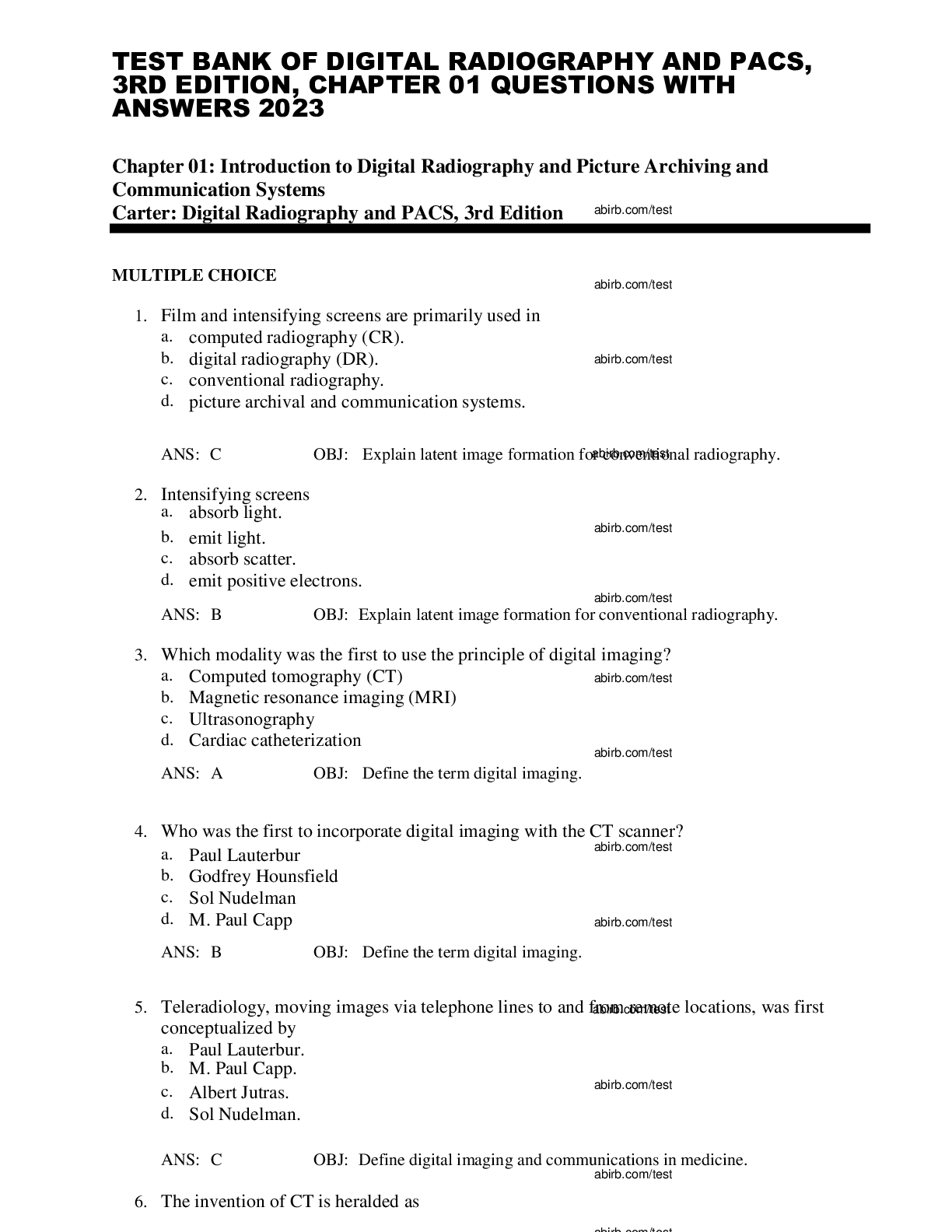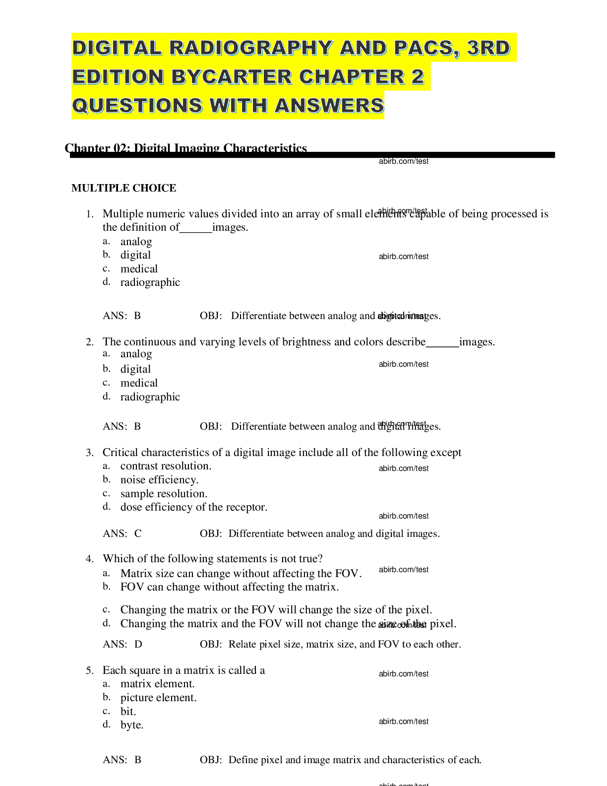 healthcare > EXAM > TEST BANK OF DIGITAL RADIOGRAPHY AND PACS, 3RD EDITION, CHAPTER 01 QUESTIONS WITH ANSWERS 2023