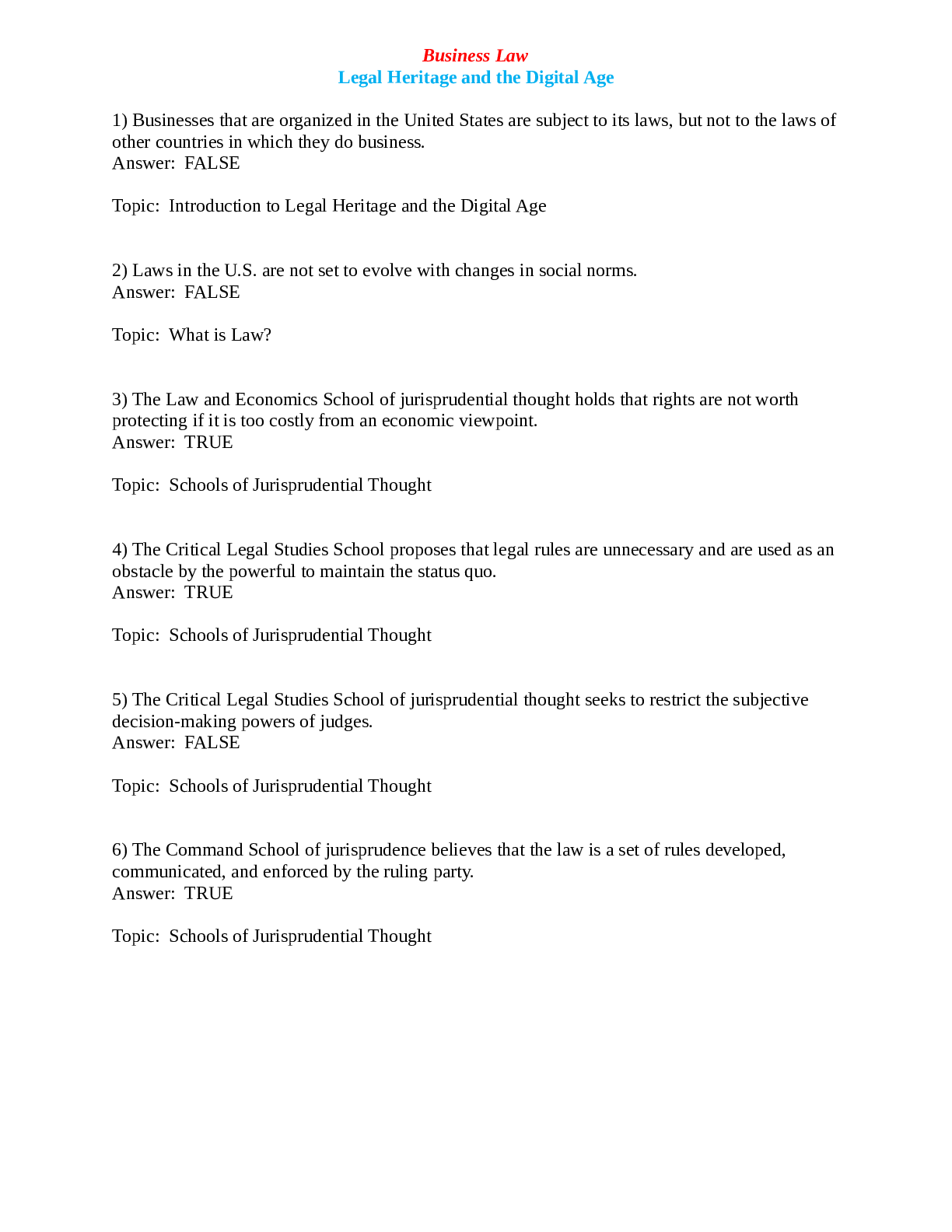 *NURSING > EXAM > Business Law Legal Heritage and the Digital Age 2023 Final Exam