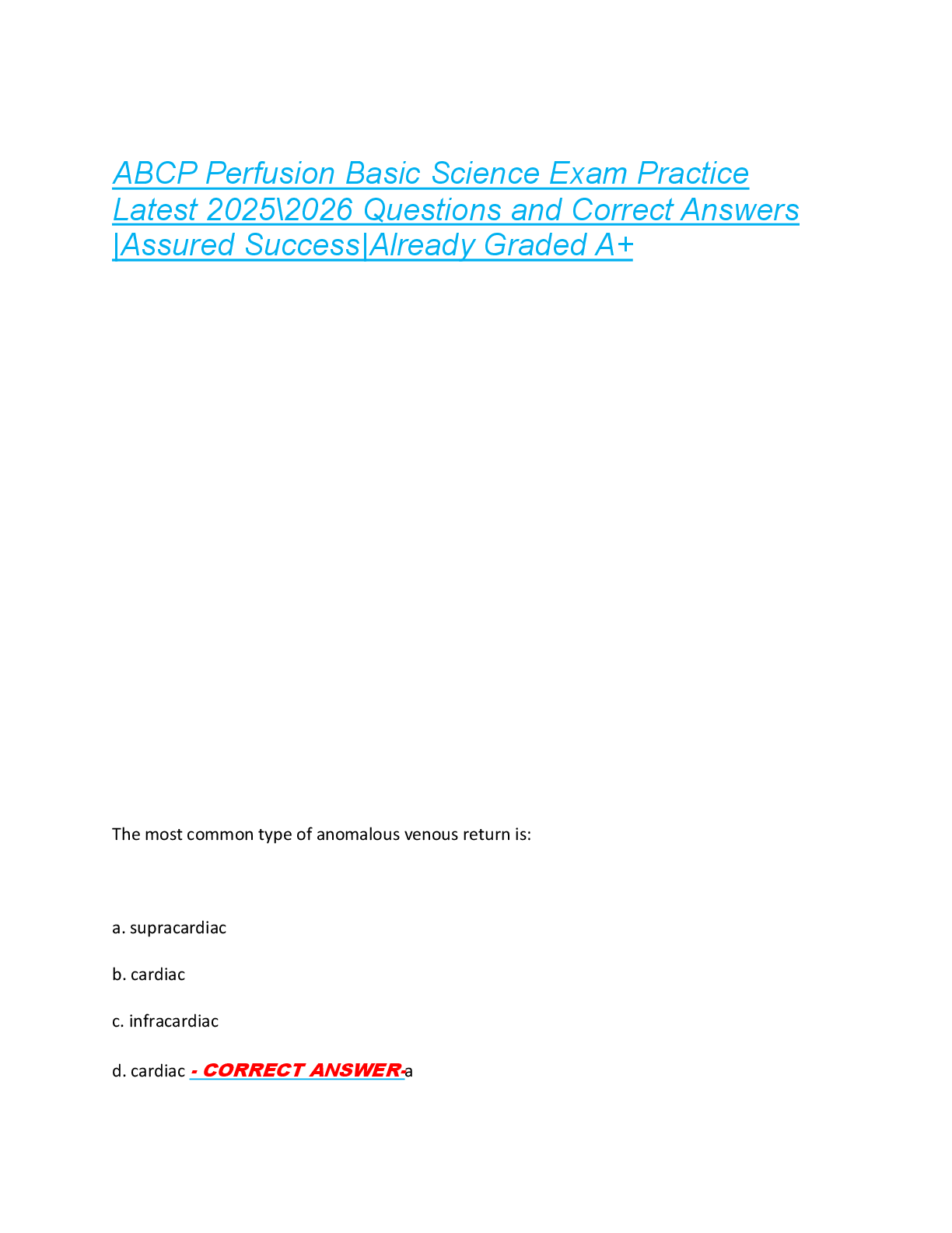*NURSING > EXAM > ABCP Perfusion Basic Science Exam Practice Latest 2025\2026 Questions and Correct Answers |Assured Success|Already Graded A+
