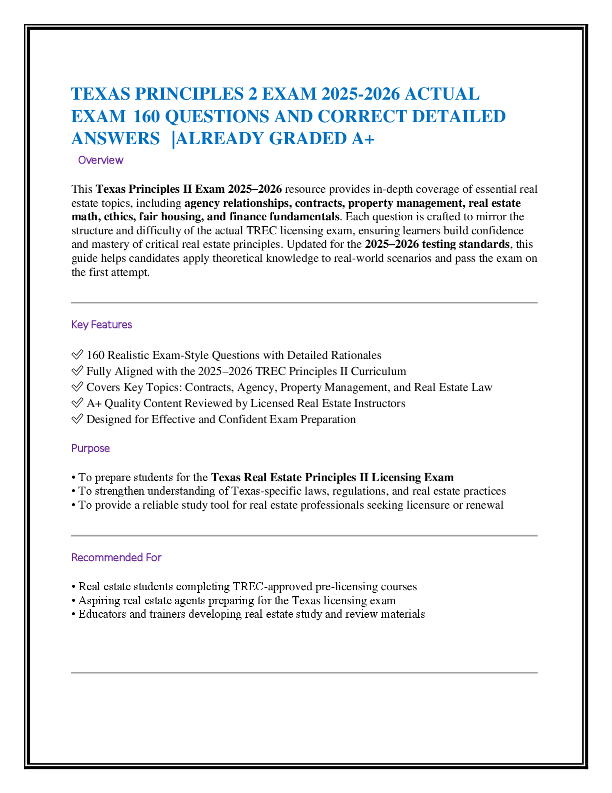 Real Estate > EXAM > TEXAS PRINCIPLES 2 EXAM 2025-2026 ACTUAL EXAM 160 QUESTIONS AND CORRECT DETAILED ANSWERS |ALREADY GRADED A+