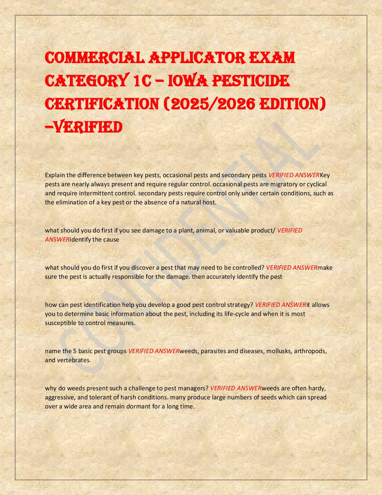 *NURSING > EXAM > Commercial Applicator Exam Category 1C – Iowa Pesticide Certification (2025/2026 Edition) –Verified