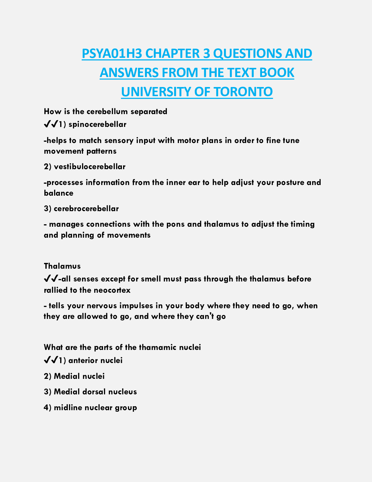 Biology > EXAM > PSYA01H3 CHAPTER 3 QUESTIONS AND ANSWERS FROM THE TEXT BOOK UNIVERSITY OF TORONTO