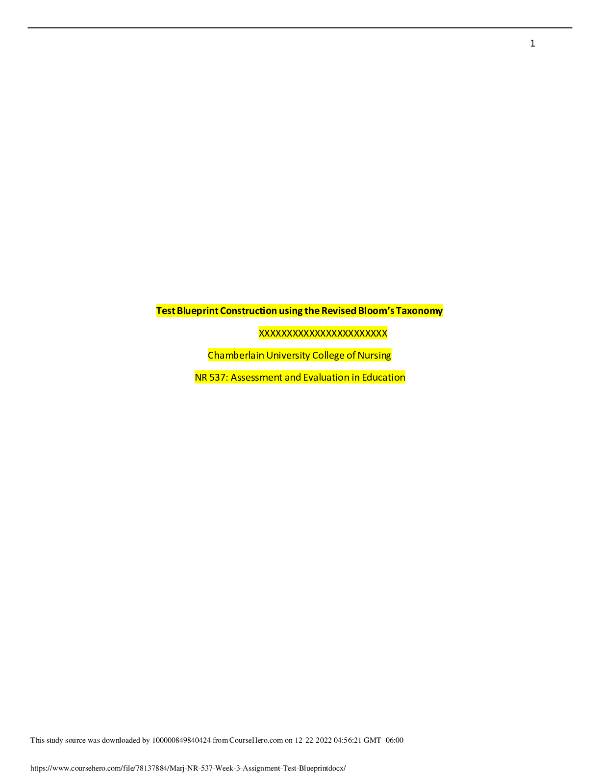 *NURSING > EXAM > NR-537 Week 3 Assignment: Test Construction Using Bloom s Revised Taxonomy | GRADED A