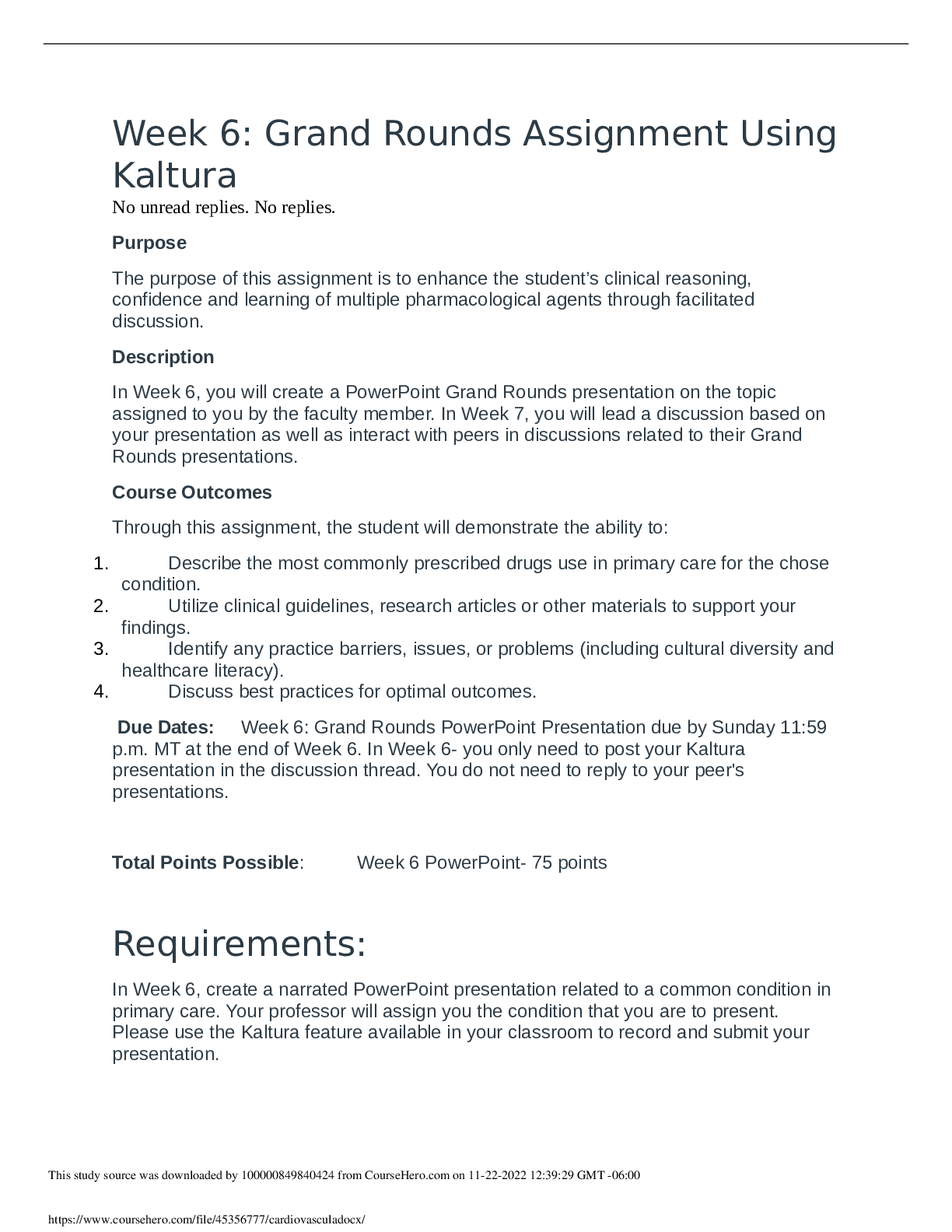 *NURSING > EXAM > NR 508 Week 6 Grand Rounds Assignment Using Kaltura (GRADED A)