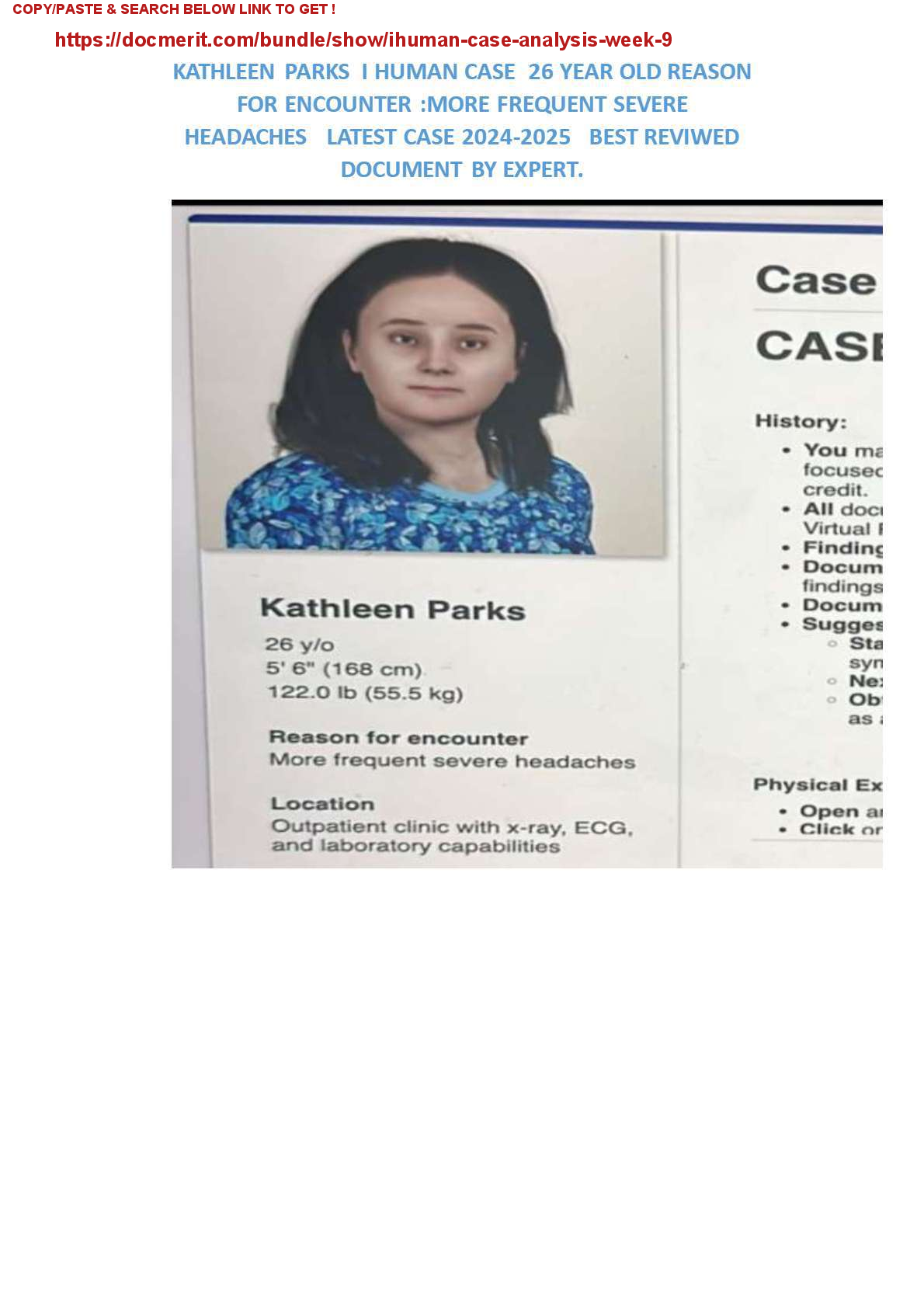 *NURSING > EXAM > COMPREHENSIVE I HUMAN CASE STUDY 26 YEAR OLD FEMALE WITH FREQUENT HEADACHES, ANALYSIS BY EXPERTS.