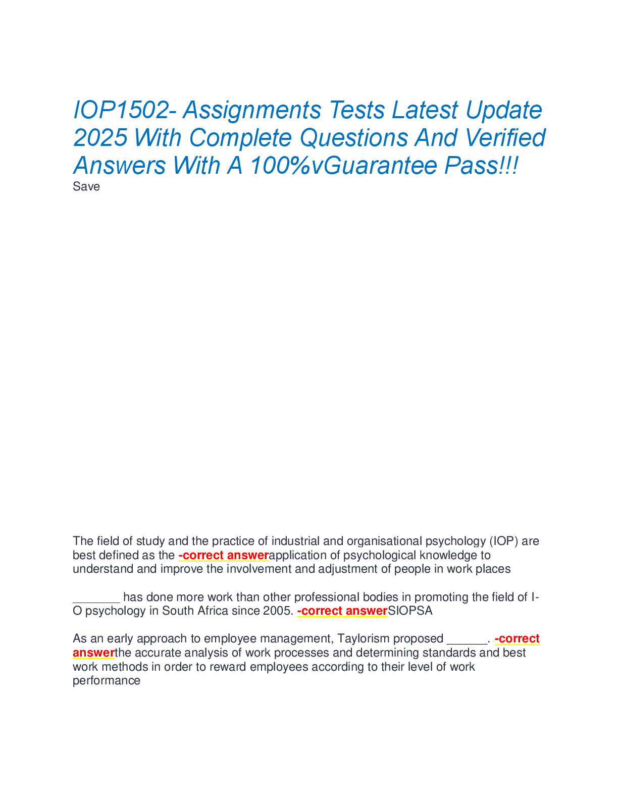 *NURSING > EXAM > IOP1502- Assignments Tests Latest Update 2025 With Complete Questions And Verified Answers With A 100%vGuarantee Pass!!!