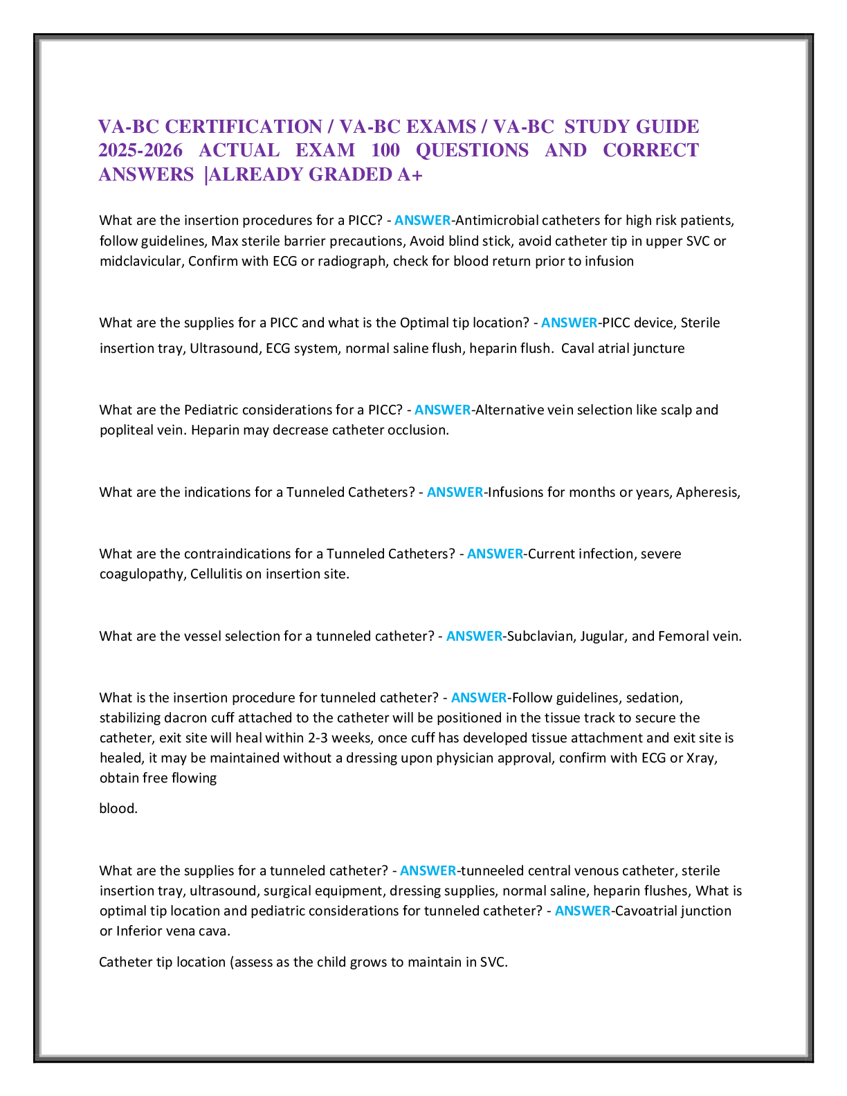 *NURSING > EXAM > VA-BC CERTIFICATION / VA-BC EXAMS / VA-BC STUDY GUIDE 2025-2026 ACTUAL EXAM 100 QUESTIONS AND CORRECT ANSWERS |ALREADY GRADED A+