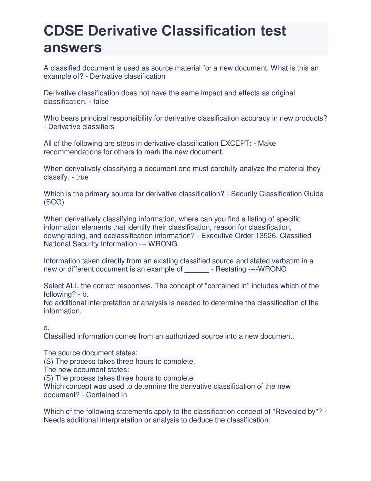*NURSING > EXAM > CDSE Derivative Classification test answers