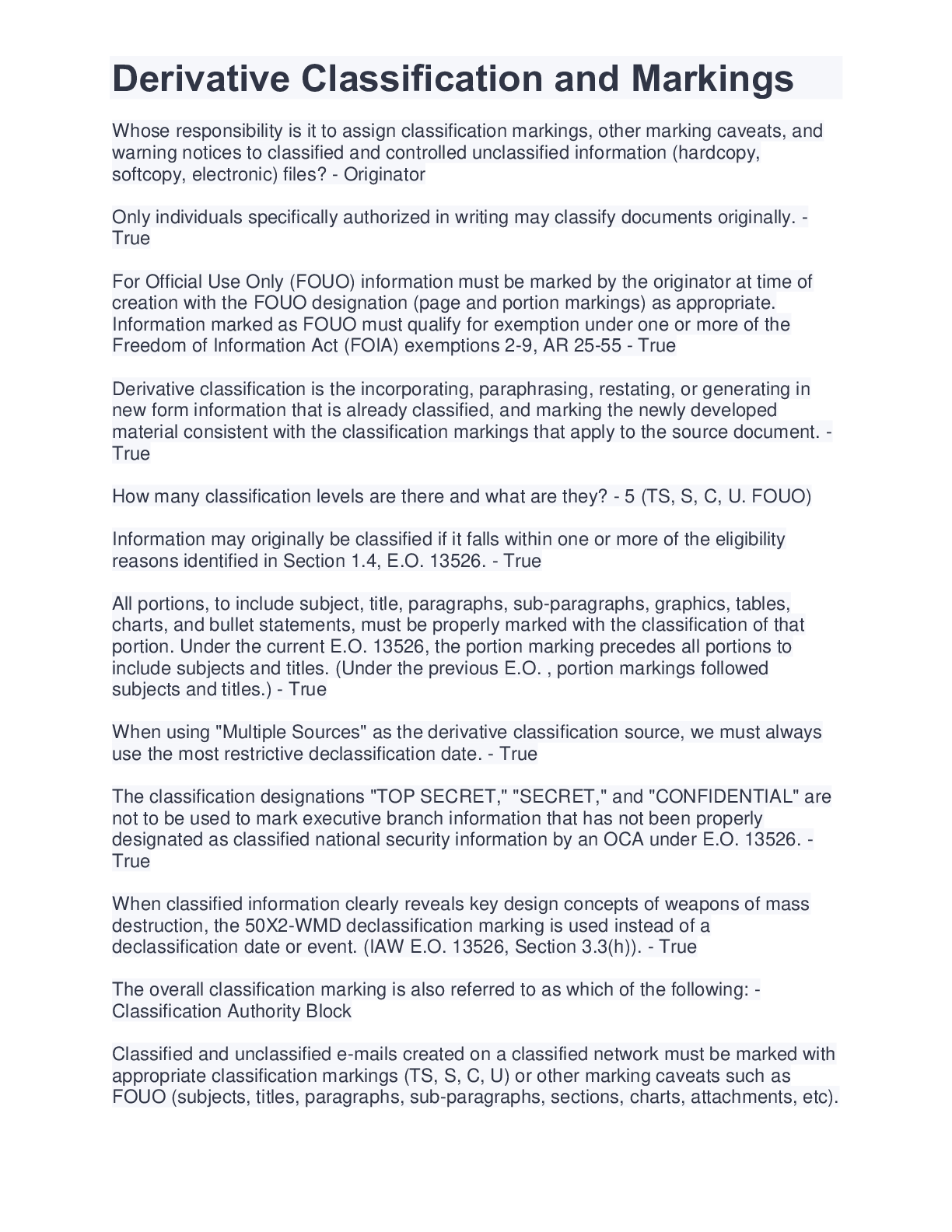 *NURSING > EXAM > Derivative Classification and Markings