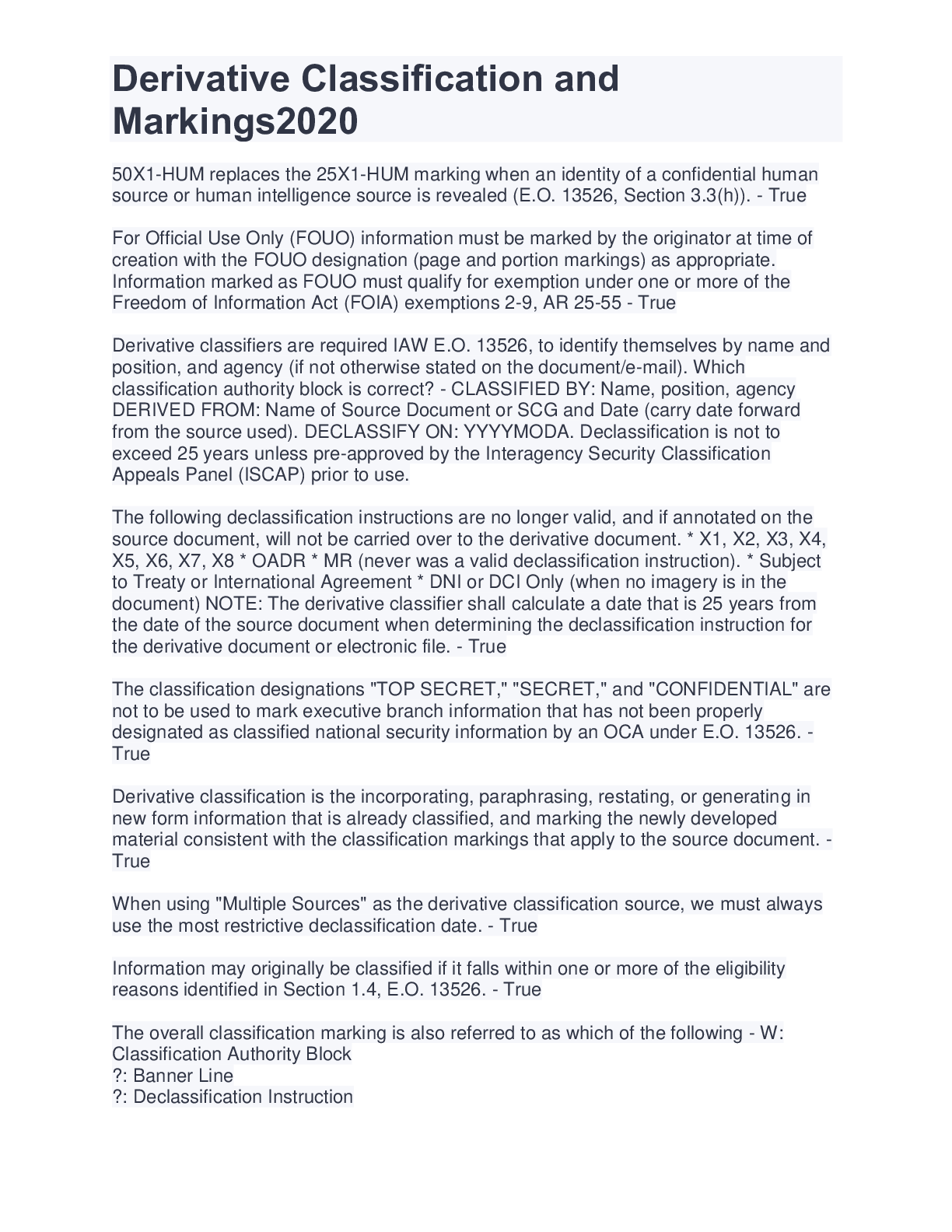 *NURSING > EXAM > Derivative Classification and Markings2020