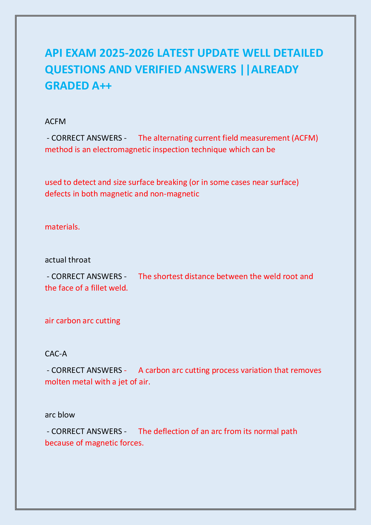 Education > EXAM > API 653 Recertification complete questions and correct detailed answers 100% 2024/ 2025