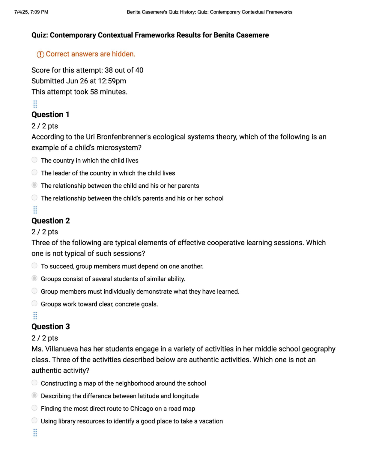 Education > EXAM > EDUC 205 Quiz: Contemporary Contextual Frameworks | Score 38/40 | Liberty University