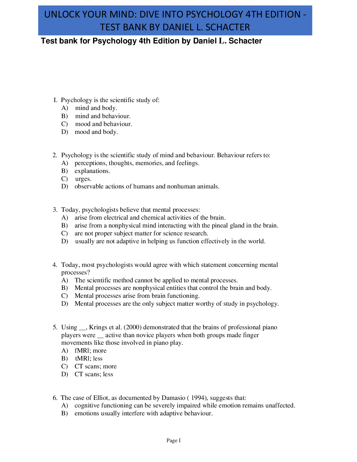 *NURSING > EXAM > Test bank for Psychology 4th Edition by Daniel L. Schacter