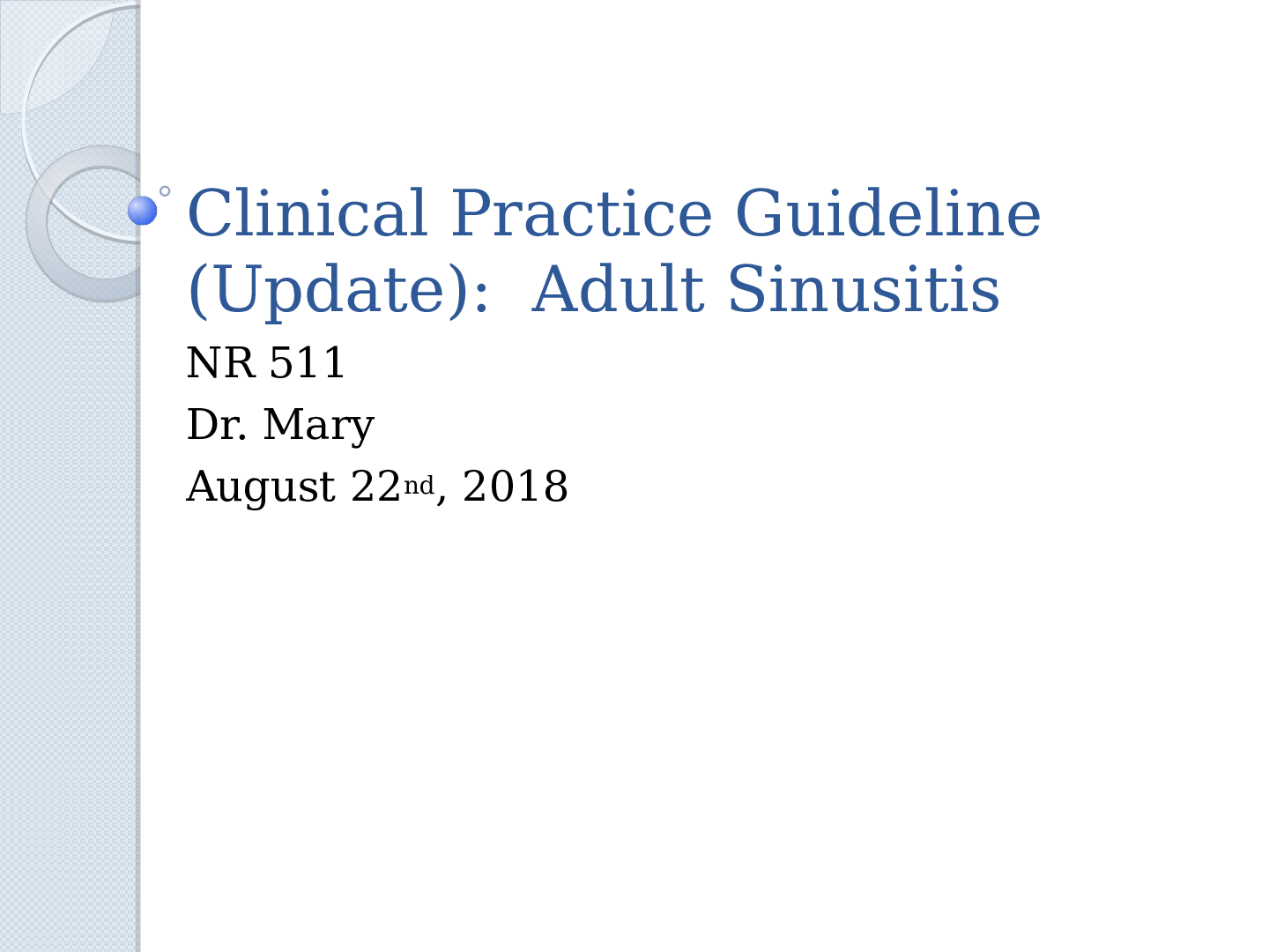 *NURSING > Presentation > Chamberlain College Of Nursing:NR 511 Week 7 Clinical Practice Guideline PowerPoint, Adult Sinusitis 2020 COMPLETE SOLUTION