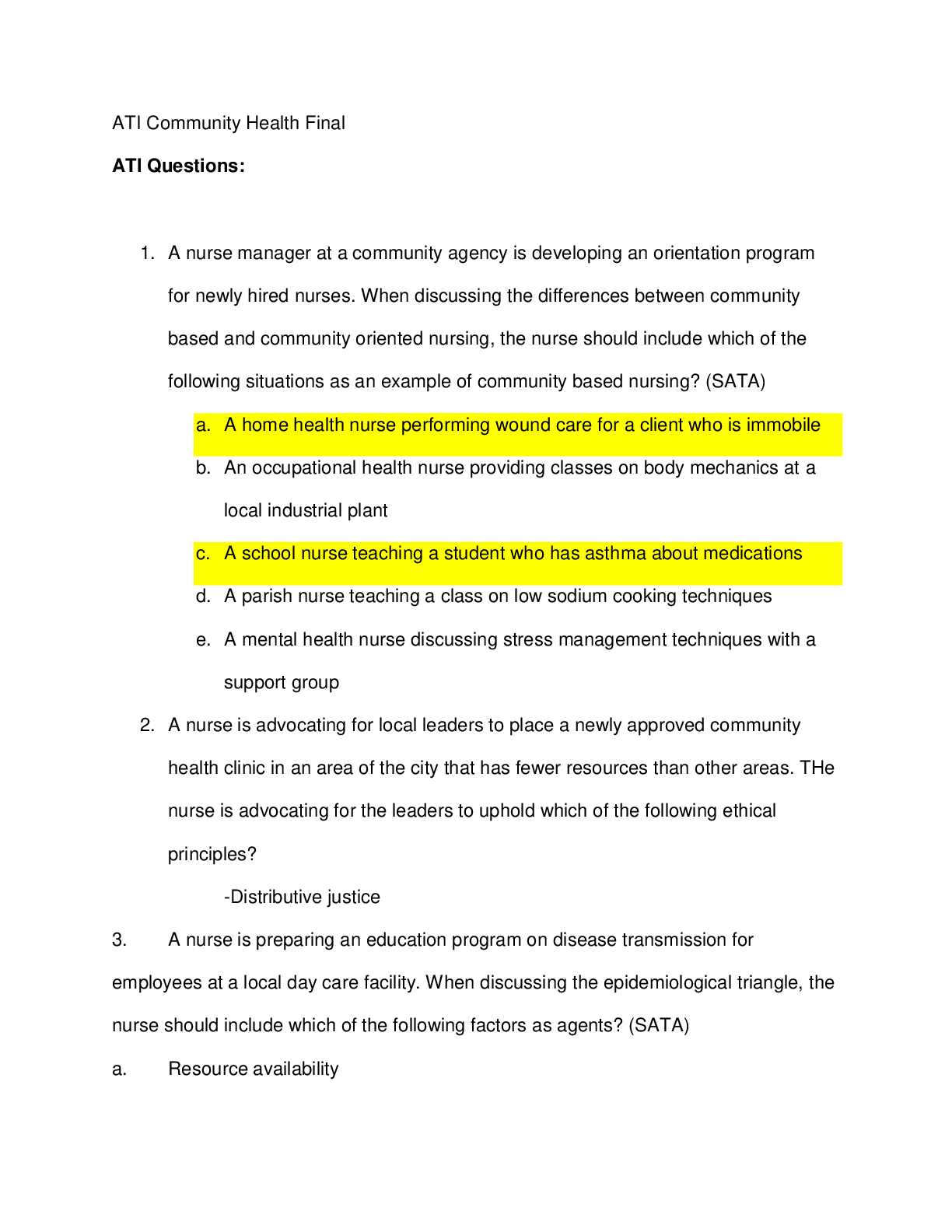 *NURSING > A-Level Question Paper > ATI Community Health Final online.pdf