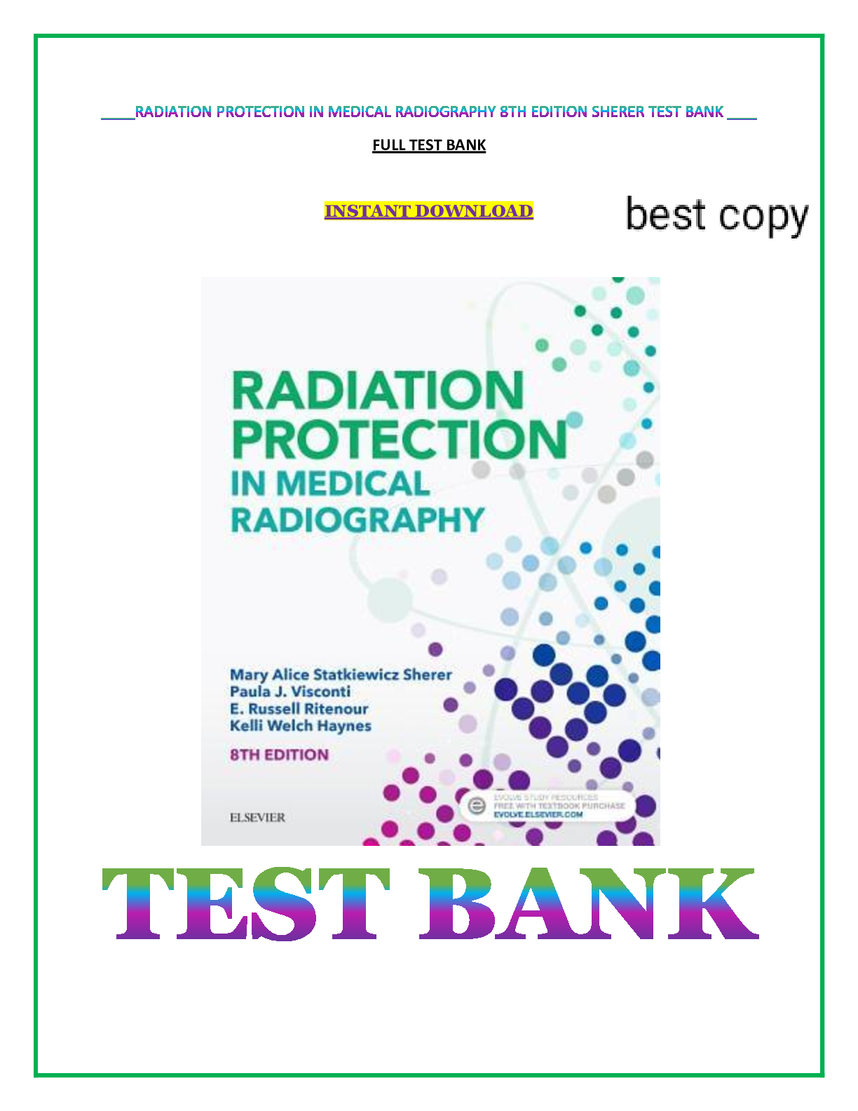 *NURSING > A-Level Question Paper > Radiation protection in medical radiography 8th edition sherer test bank