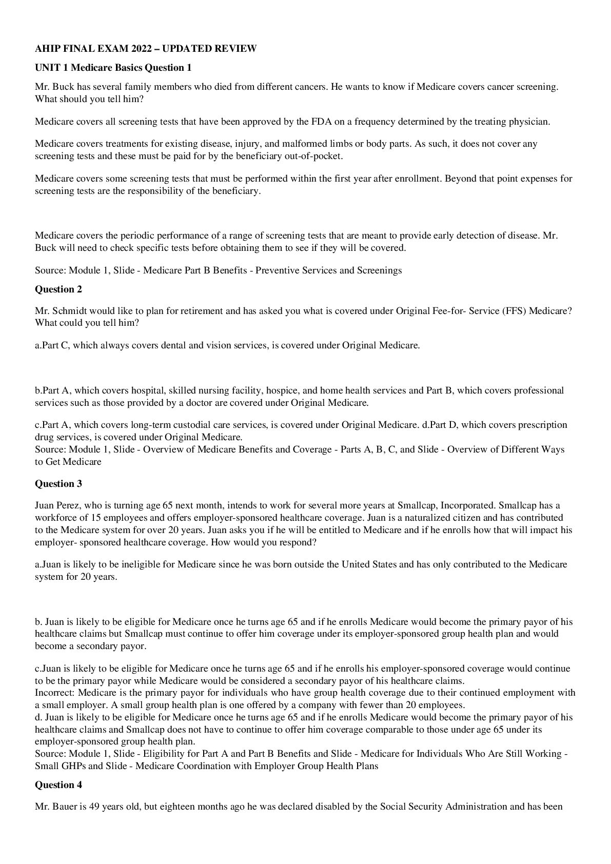 Health Care > AHIP > AHIP Final Exam Questions AND ANSWERS ALL CORRECT