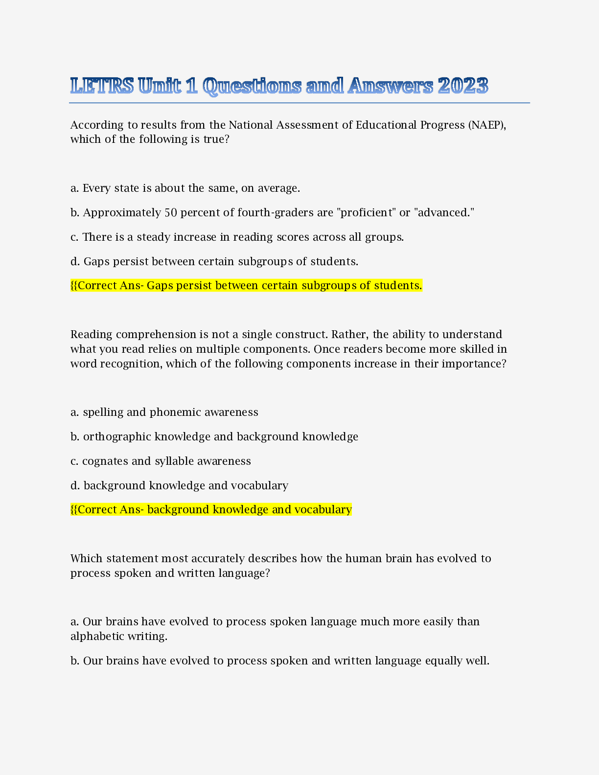 Education > IELTS > LETRS Unit 1 Questions and Answers 2023
