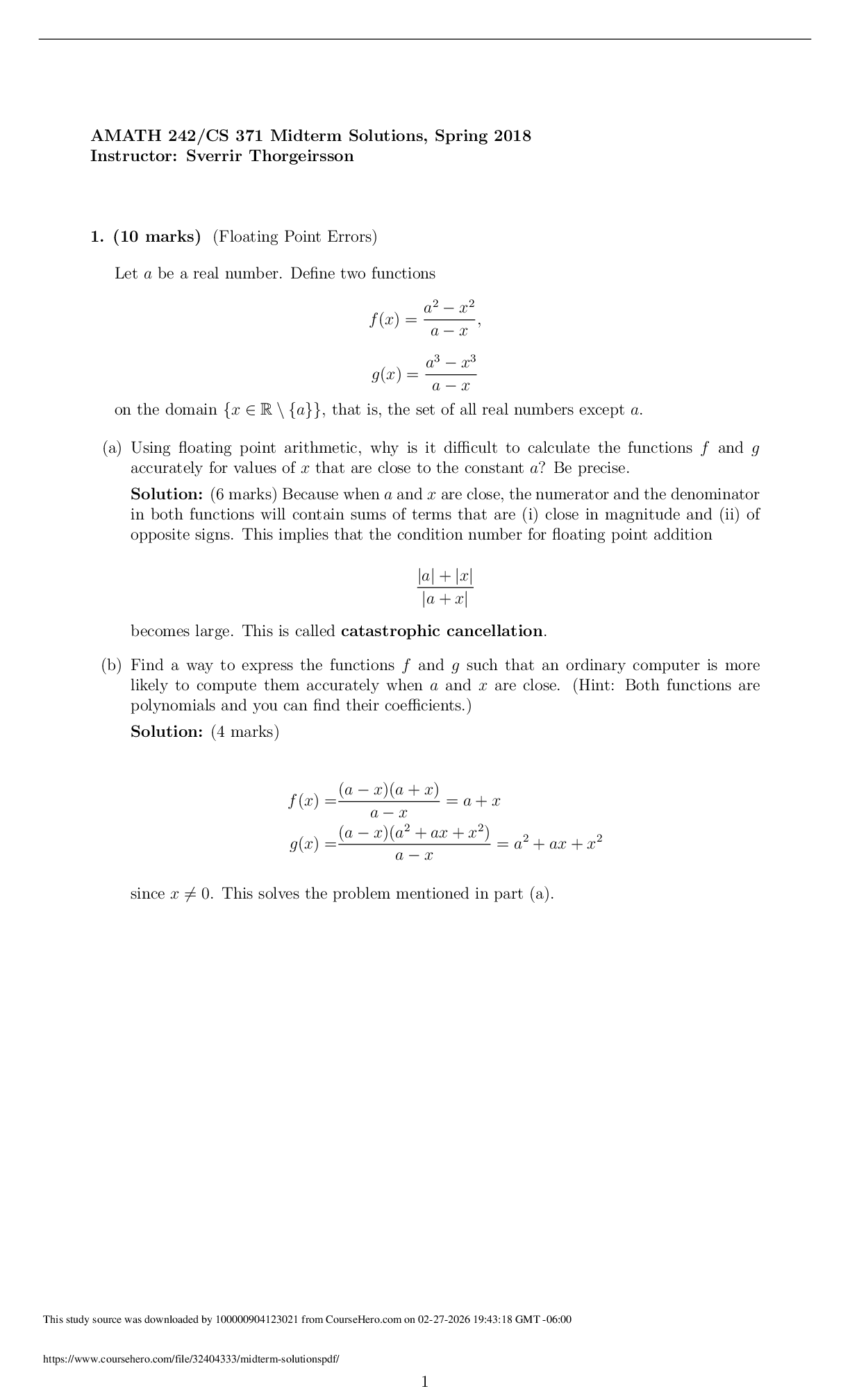 Mathematics > SOLUTIONS > AMATH 242/CS 371 Midterm Solutions